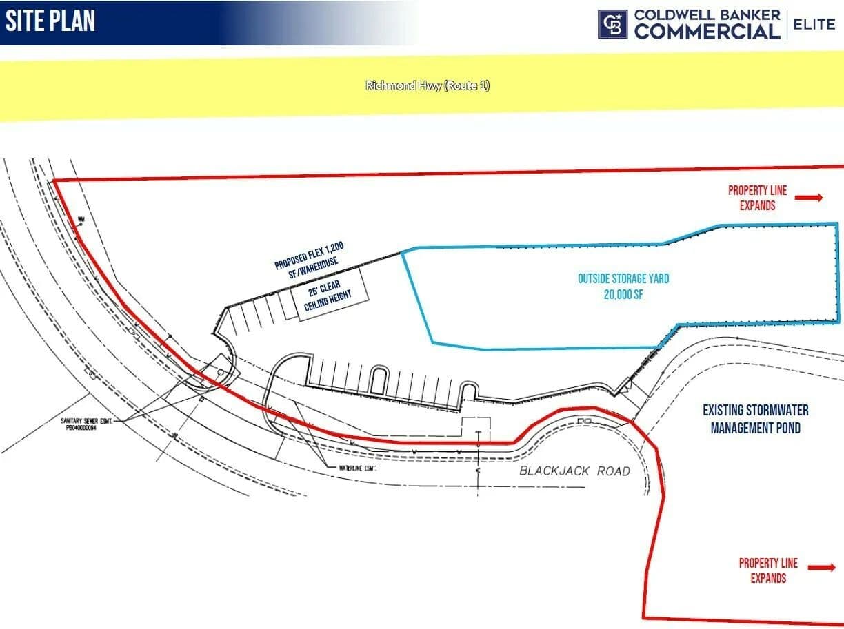45 Blackjack Road offers an exceptional opportunity to acquire 4.803 acres of commercial land in Stafford County, VA. Consisting of two adjoining parcels (1.99 acres and 2.8133 acres), the property is zoned M-1 (Industrial) and B-1 (Business), allowing for flexible development options. With an existing storm water management pond and a site plan already approved for a 1,200 SF flex/office building and more than 20,000 SF of outdoor storage, the property is development-ready—permitting immediate construction and quick time-to-market for end users or investors.
