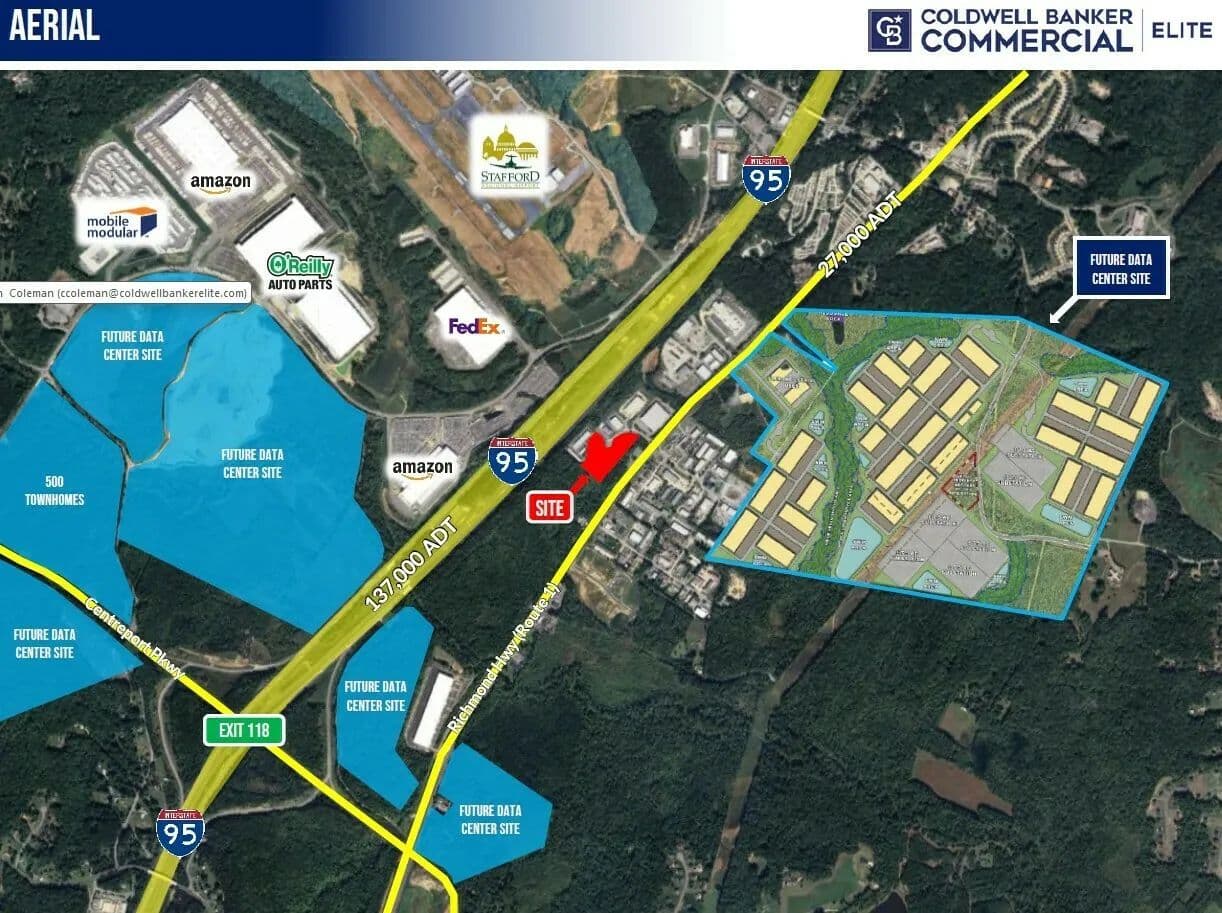 Strategically located just minutes from Interstate 95, the site offers strong regional connectivity. In addition, it neighbors a 500-acre, 23-building data center development, enhancing the property’s long-term value and positioning it within a rapidly expanding commercial corridor.