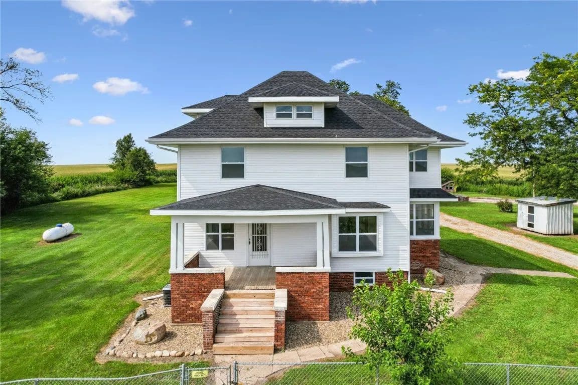 Experience the perfect combination of modern updates and timeless country character with this spacious 5-bedroom, 2 full bath, 2 half bath home offering 3,348 sq. ft. of living space on 10.78 acres in Van Horne, Iowa (Benton County). The property may be parceled, and sellers are open to offers that reflect this option. This 2+ story craftsman-style farmhouse has been thoughtfully updated to preserve its historic charm while incorporating modern conveniences. Recent exterior improvements include a new roof, siding, windows, and gutters. Inside, you’ll find beautifully refinished flooring, fresh paint, updated countertops, new cabinets, modern lighting, and a new sink with a built-in glass wash station. A bright breakfast nook offers a welcoming spot to enjoy views of the property and abundant natural light. Utility upgrades include a tankless water heater, new water softener, updated PEX piping, a new well pump, and a new well tank—ensuring efficiency and reliability. The detached 3-stall garage has been refreshed with a new roof, siding, garage doors, and a concrete floor, providing ample space for vehicles and storage. The property also features a 66x100 arena, which can serve equestrian purposes or be adapted for large-scale storage, equipment, or business use. Located directly on Highway 30, this property offers excellent visibility and accessibility, creating unique opportunities for residential or Homesteading, or multiple home based business purposes. 6' fencing and entry gate along the highway offers additional security as well. Contact your real estate professional today to schedule a showing.