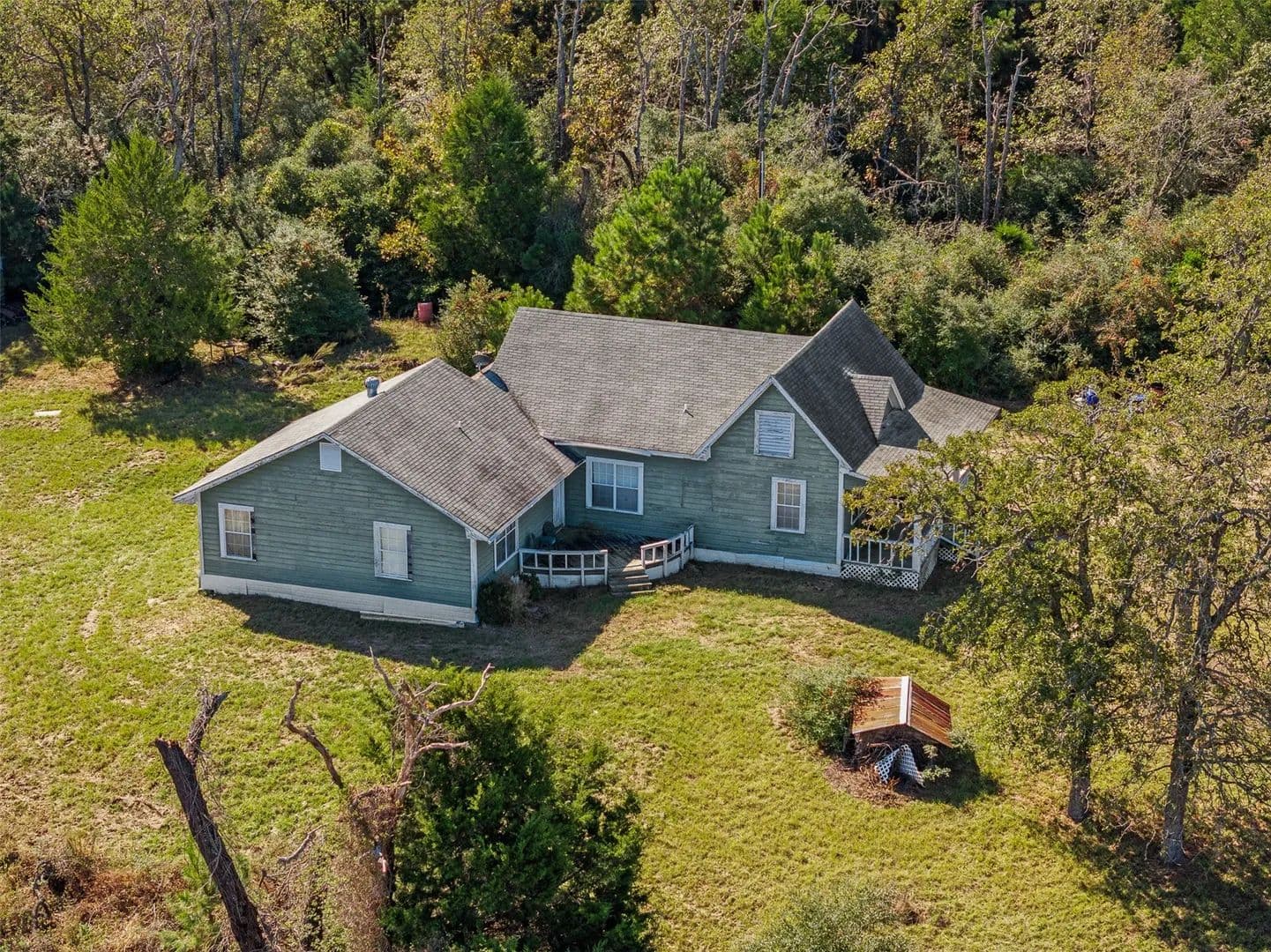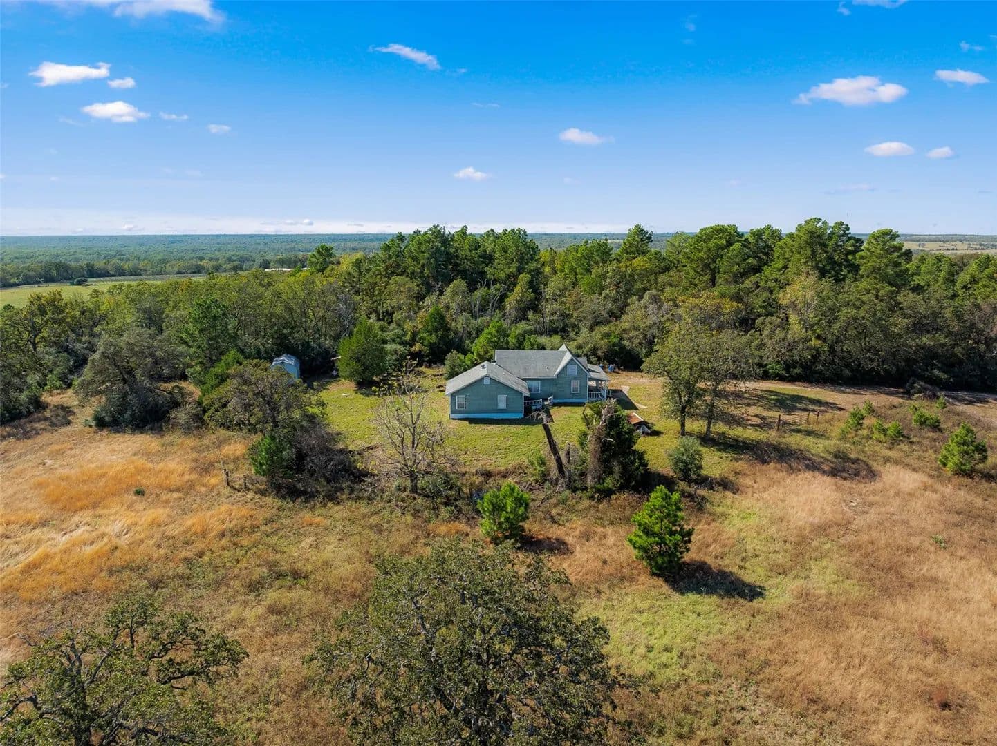 Nestled atop a hill with an amazing view, this charming farmhouse sits on 17 picturesque acres offering a peaceful blend of wooded and cleared pastureland. With 4-5 bedrooms and 2 bathrooms, this home is full of potential and ready for someone with a vision to restore it to its full glory. The property features a serene pond, a spacious shop with electricity for projects or storage, and a covered front porch perfect for relaxing while enjoying the expansive views. While the house could use some tender loving care, its classic farmhouse appeal, combined with the sprawling acreage, presents a rare opportunity to create a beautiful and private retreat. Whether you're looking to restore a historic home or create your own country oasis, this property offers the ideal canvas.