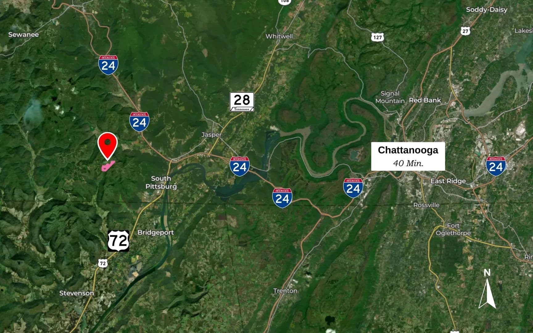 Escape to 130+/- ACRES in East Tennessee! Breathtaking BLUFF frontage, mature hardwoods, unique rock formations, and long-range VIEWS create a stunning backdrop for your dream retreat. This South Pittsburg, TN address is perfectly positioned just 40 minutes from Chattanooga and within easy reach of Nashville, Birmingham, and Atlanta. The best of both worlds: peaceful seclusion and convenient access. Dream becomes reality here for one or multiple custom homes, cozy cabin, or as a RECREATIONAL weekend getaway for hiking and hunting. Life ''unplugged'' is within reach: the outdoor potential here is unmatched. Wildlife roams, birds chirp, and views await you! Several CREEKS flow through the property and await your exploration. Don't underestimate the CONVENIENCE FACTOR: Only 10 minutes to South Pittsburg, 15 to Kimball, and 20 to Jasper. Access via South Pittsburg Mountain Rd / Hwy 156 makes travel easy to I-24, restaurants, and big box stores like Lowe's and Walmart. NO STATE INCOME TAX in TN! Build a legacy property in the heart of East Tennessee's mountain country.