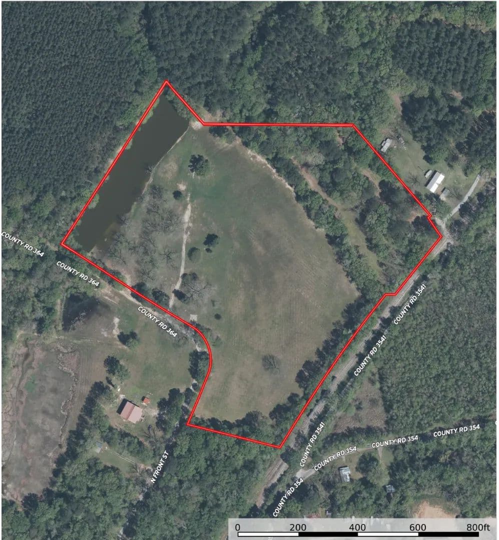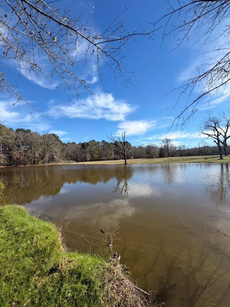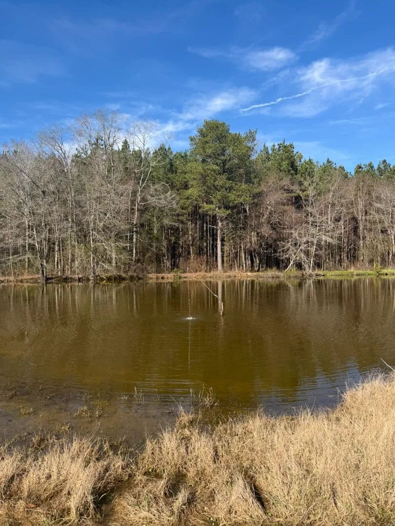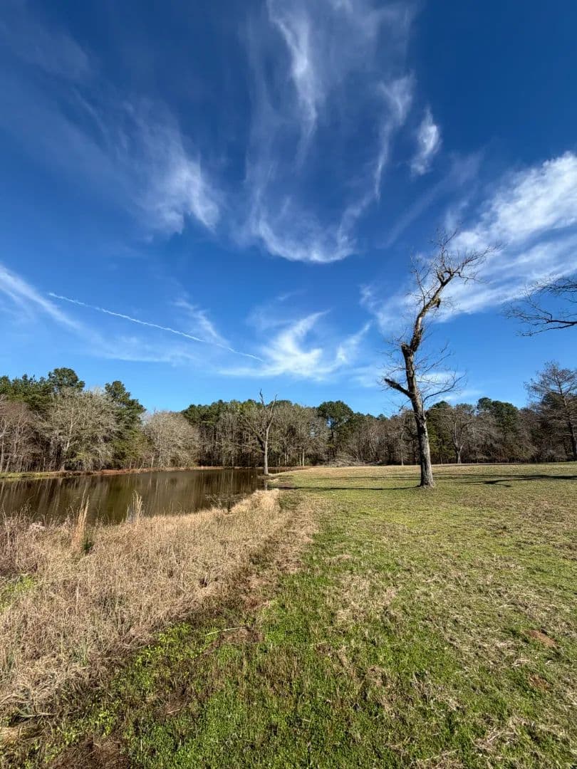 The property is primarily open field, providing exceptional flexibility for building, farming, or residential development. Along the eastern boundary, a creek winds beneath a canopy of mature oak trees, creating a scenic natural border and a peaceful backdrop for homesites or farm infrastructure. Nestled within the field is an artesian well–fed pond, offering limitless opportunities for a mini farm or homestead, and allowing for fishing and recreation activities.