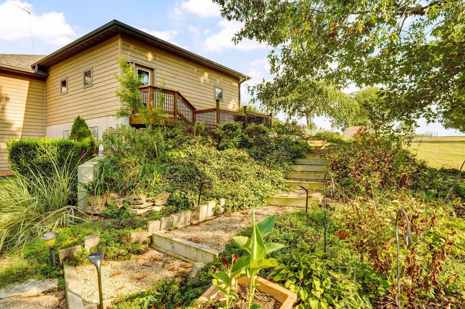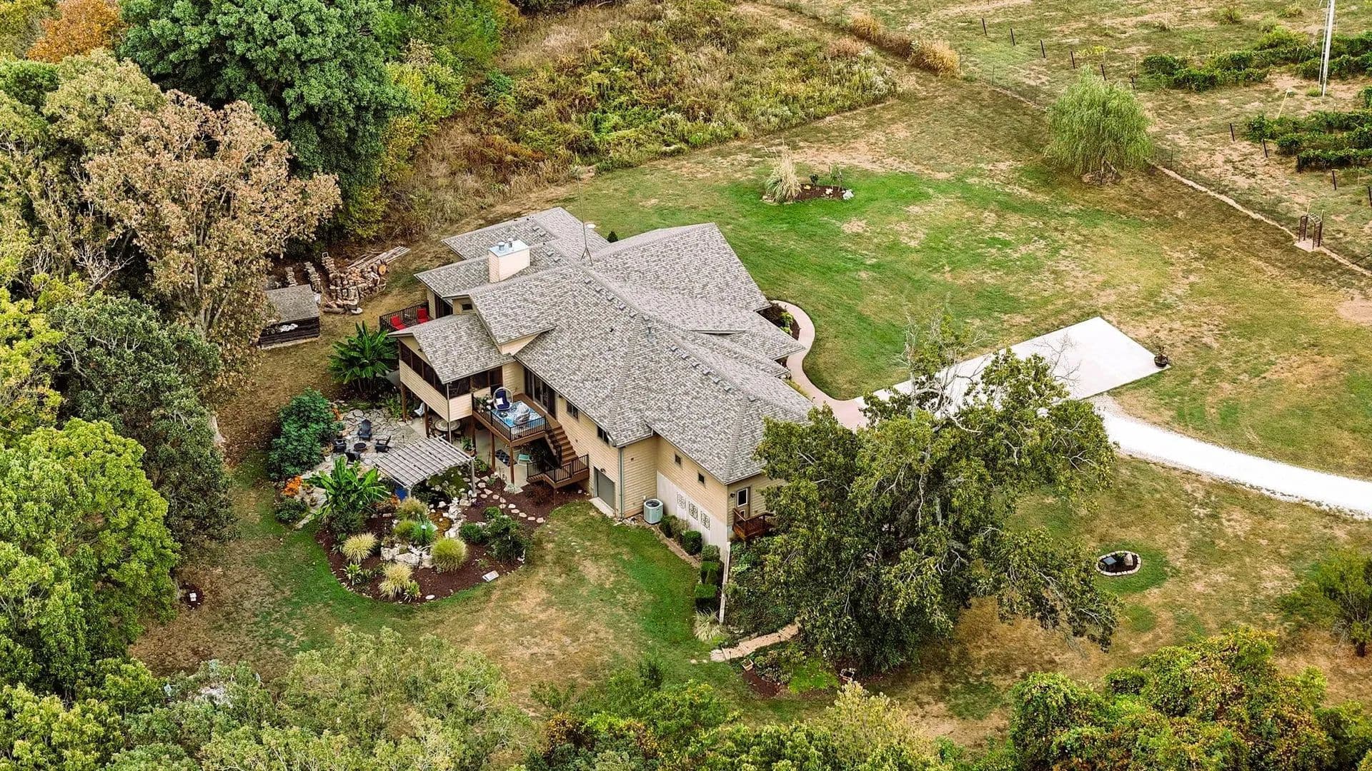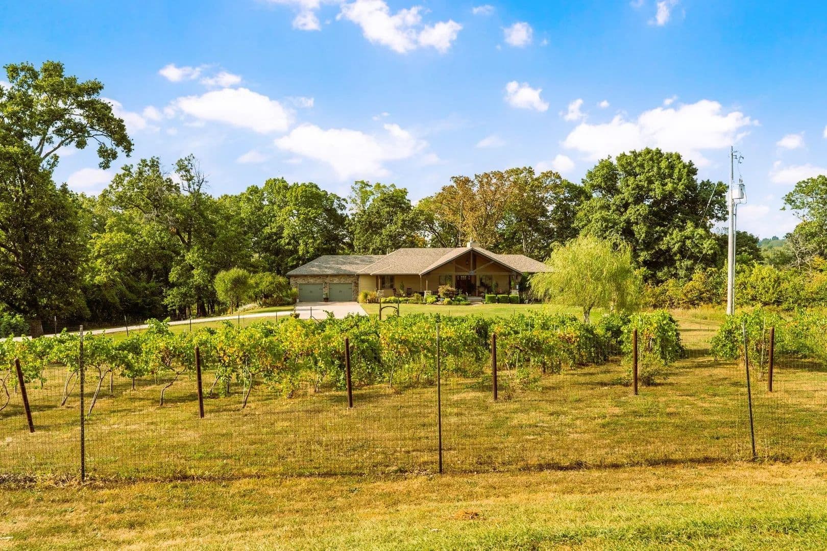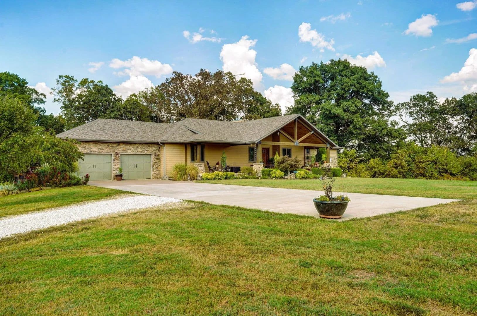 Morning coffee on a quiet deck. Sunset over the bluff. Deer moving through the trees while the koi pond ripples below. This is the kind of property people say they hope to find 'one day.' Here, it's real -- and it's move-in ready.Set on 10 secluded acres at the end of a long private drive, this one-owner, custom-built 5,500 sq. ft. estate blends comfort, craftsmanship, and privacy just minutes from Springfield and Fellows Lake. Designed with energy efficiency in mind, it features full foam insulation, 5 bedrooms (each with walk-in closets), 3 bathrooms, and a front office that can also serve as a 6th bedroom.The main level centers around a vaulted living room with a stone fireplace and insert, opening to a gourmet kitchen with new double refrigerator, granite island, custom hickory cabinetry, and a large butler's pantry. The oversized primary suite offers two walk-in closets, a soaking tub, walk-in shower, and private deck access with sweeping views.Indoor and outdoor living connect seamlessly through a screened porch, massive maintenance-free TimberTech decks, and patios overlooking an 1,800-gallon koi pond, water features, and wooded bluff. A remote collar-activated pet door and dog run with outdoor camera allow you to check on pets anytime.The walkout lower level features 9-foot ceilings, a second fireplace, wine/rec room, and generous storage. Outside, you'll find fenced raised garden beds, a producing 1/2-acre Chardonel vineyard, orchard, berry patch, greenhouse, shop, and even a heated outdoor shower. Wildlife visits daily.Recent upgrades include a new roof, Anderson windows, TimberTech decking, Hardie fiber-cement siding, and a whole-house backup generator. Heating flexibility includes propane or the optional exterior wood heating system.A rare opportunity to own a thoughtfully crafted, private estate where every detail has been designed for beauty, comfort, and long-term enjoyment.