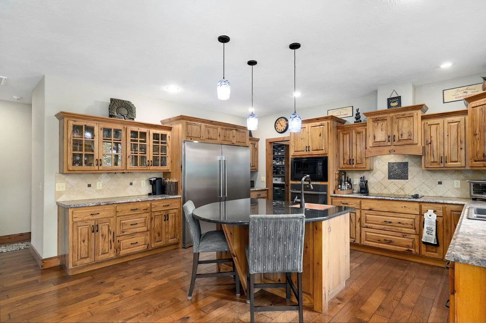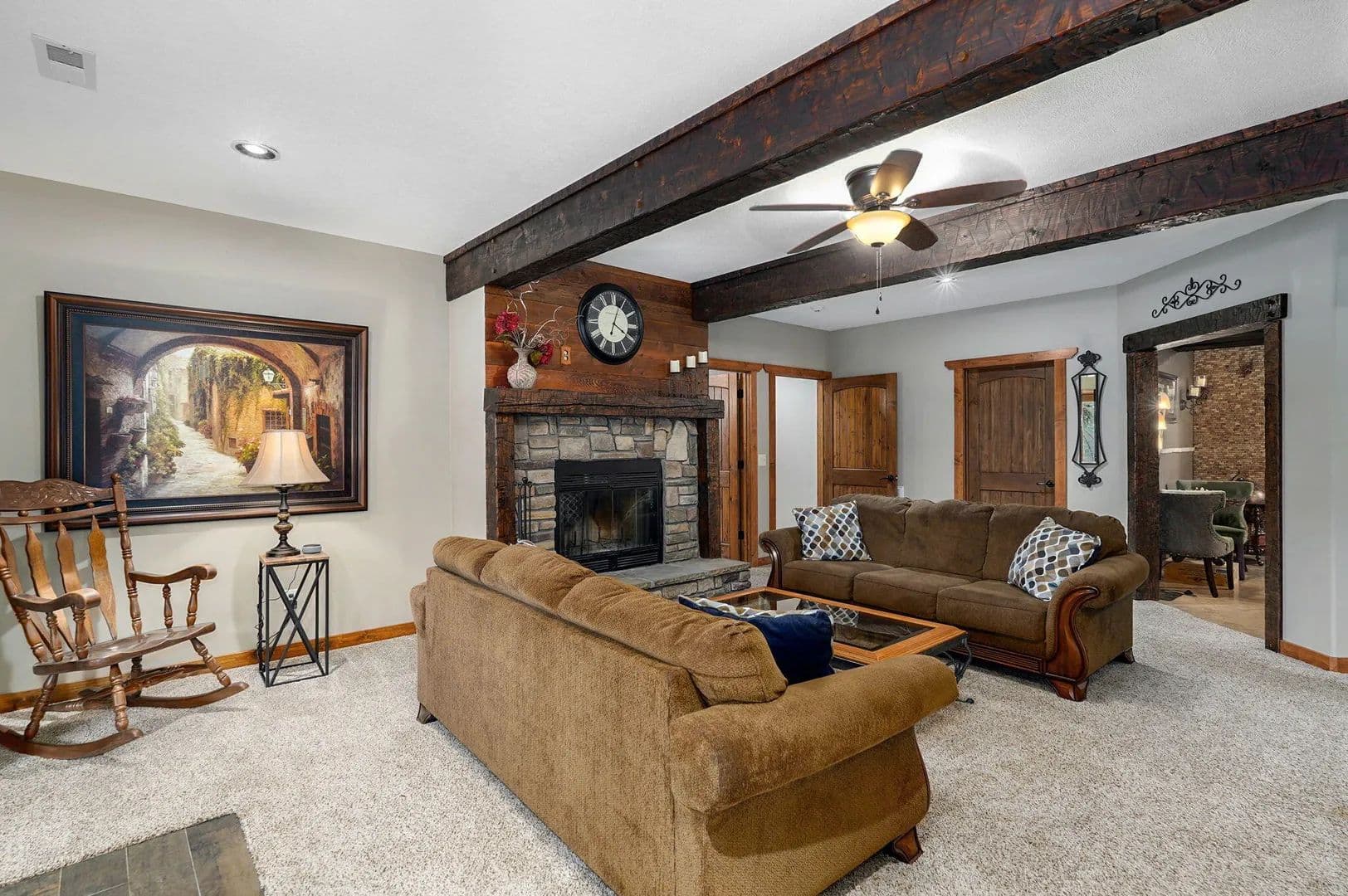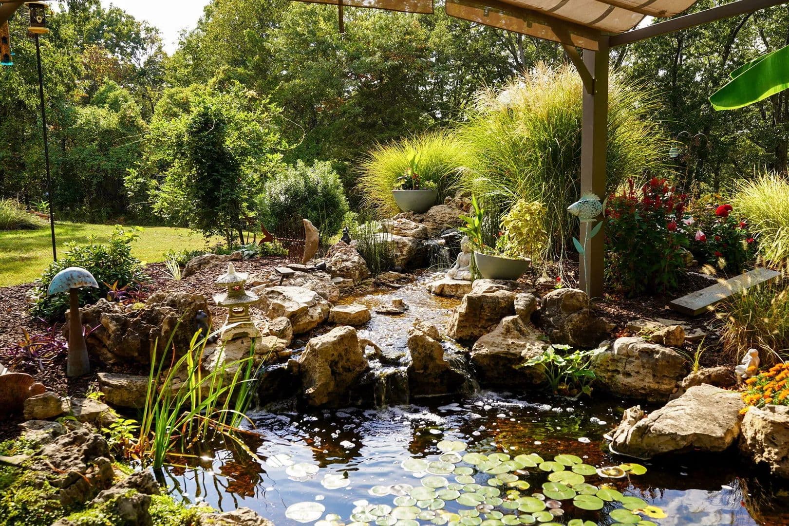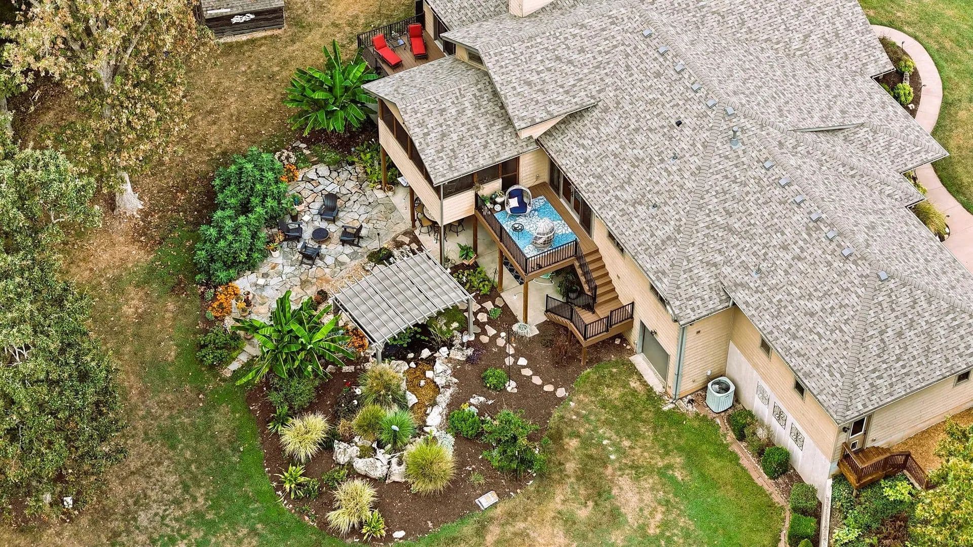 Morning coffee on a quiet deck. Sunset over the bluff. Deer moving through the trees while the koi pond ripples below. This is the kind of property people say they hope to find 'one day.' Here, it's real -- and it's move-in ready.Set on 10 secluded acres at the end of a long private drive, this one-owner, custom-built 5,500 sq. ft. estate blends comfort, craftsmanship, and privacy just minutes from Springfield and Fellows Lake. Designed with energy efficiency in mind, it features full foam insulation, 5 bedrooms (each with walk-in closets), 3 bathrooms, and a front office that can also serve as a 6th bedroom.The main level centers around a vaulted living room with a stone fireplace and insert, opening to a gourmet kitchen with new double refrigerator, granite island, custom hickory cabinetry, and a large butler's pantry. The oversized primary suite offers two walk-in closets, a soaking tub, walk-in shower, and private deck access with sweeping views.Indoor and outdoor living connect seamlessly through a screened porch, massive maintenance-free TimberTech decks, and patios overlooking an 1,800-gallon koi pond, water features, and wooded bluff. A remote collar-activated pet door and dog run with outdoor camera allow you to check on pets anytime.The walkout lower level features 9-foot ceilings, a second fireplace, wine/rec room, and generous storage. Outside, you'll find fenced raised garden beds, a producing 1/2-acre Chardonel vineyard, orchard, berry patch, greenhouse, shop, and even a heated outdoor shower. Wildlife visits daily.Recent upgrades include a new roof, Anderson windows, TimberTech decking, Hardie fiber-cement siding, and a whole-house backup generator. Heating flexibility includes propane or the optional exterior wood heating system.A rare opportunity to own a thoughtfully crafted, private estate where every detail has been designed for beauty, comfort, and long-term enjoyment.