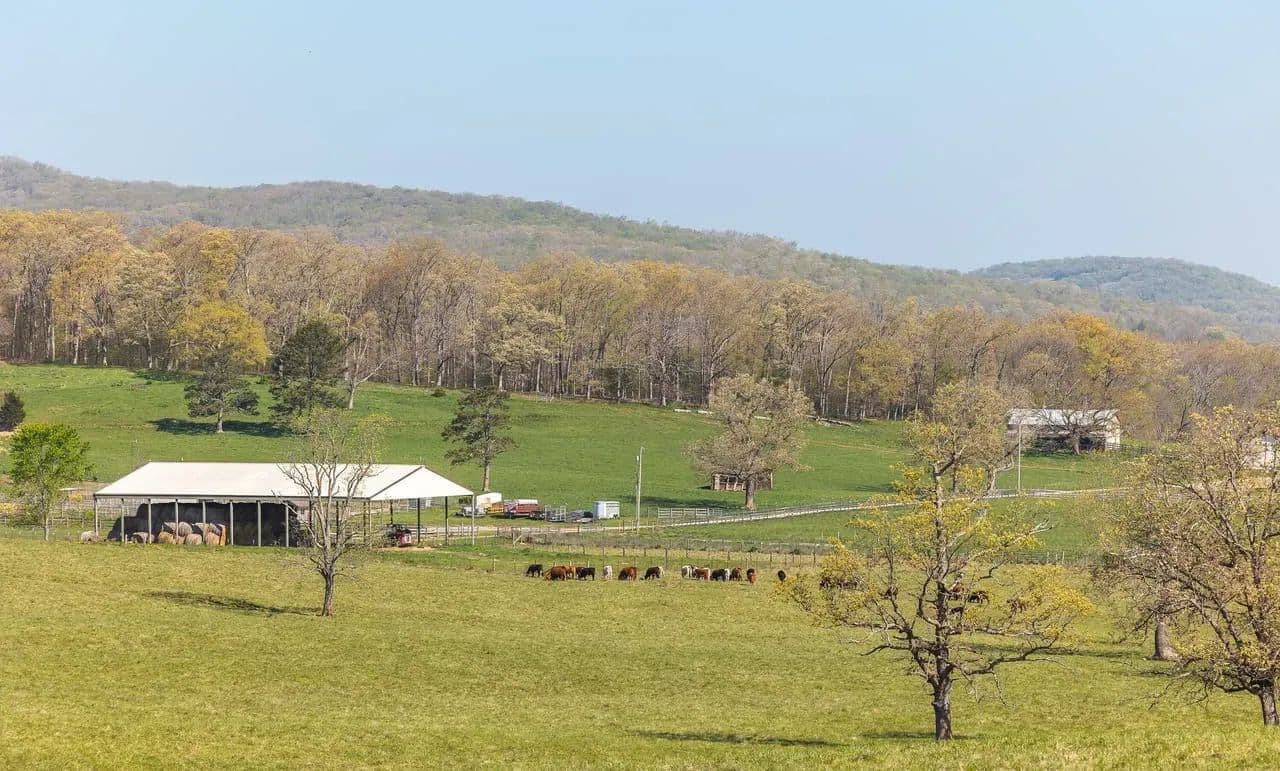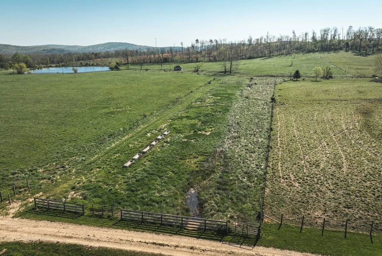 Over half of the 686 acres is lush pasture, fully fenced and cross-fenced with automatic waters in every field. A natural spring provides water to the entire farm, complemented by a spring-fed pond and a 1+ acre stocked pond—perfect for livestock and recreation.