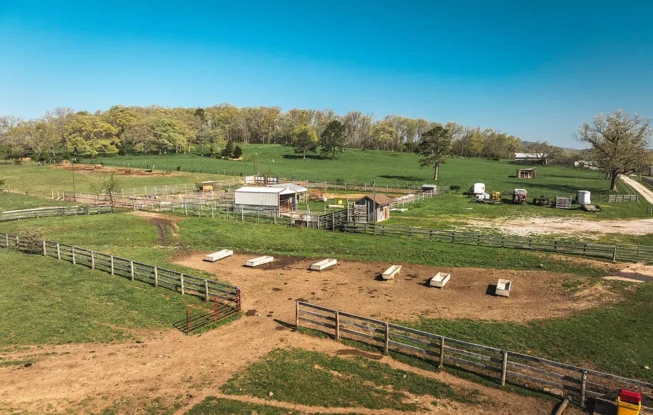 The farm is fully equipped with 4 sorting pens, a working chute with head gate, loading/unloading chute, digital livestock scale, tractors, trailers, and additional equipment included.