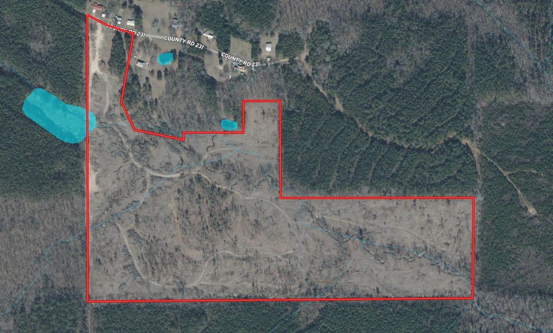 A majority of the timber has been cut, with the remaining SMZs in place. The property offers multiple opportunities for a new owner. For hunting, an established trail system reaches across a portion of the rolling terrain. The topography allows for a few strategic food plots to be placed in the bottomland along the two streams that traverse the property. The habitat is thick, making it ideal for prescribed burning, deer bedding, and turkey browsing. As a bonus, the land is approximately 1⁄4 mile west of the Big Black River.