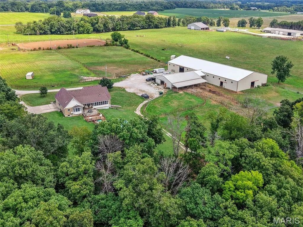 Motivated Seller! Equestrians Dream Estate on 24+ sprawling acres! Welcome to your private country retreat. Step inside this beautifully maintained ranch home to a spacious, open floor plan featuring 4beds/4 full baths, vaulted ceilings, expansive living area, a large kitchen island, formal dining room & main floor laundry. A partially finished walk-out basement offers additional living space with kitchenette, bonus room, & rec room. The 3 season porch is perfect for morning coffee or just relaxing, while the large patio, deck & above ground pool will be the highlight of family celebrations. With over 5600sqft of finished living space the possibilities are endless. Horse lovers will fall in love with the thoughtfully designed, heated barn, complete with 8 spacious 12x16 stalls, a large tack room, wash stall and full bathroom. Ride year round in the impressive 80x200 indoor riding arena, take advantage of the 150x250 outdoor arena or let your horses enjoy the expansive, fully fenced turnout pastures. The back pasture has a small pond, and gently rolling landscape. Just minutes from Hwy 70 and only 45min to Lambert airport!
