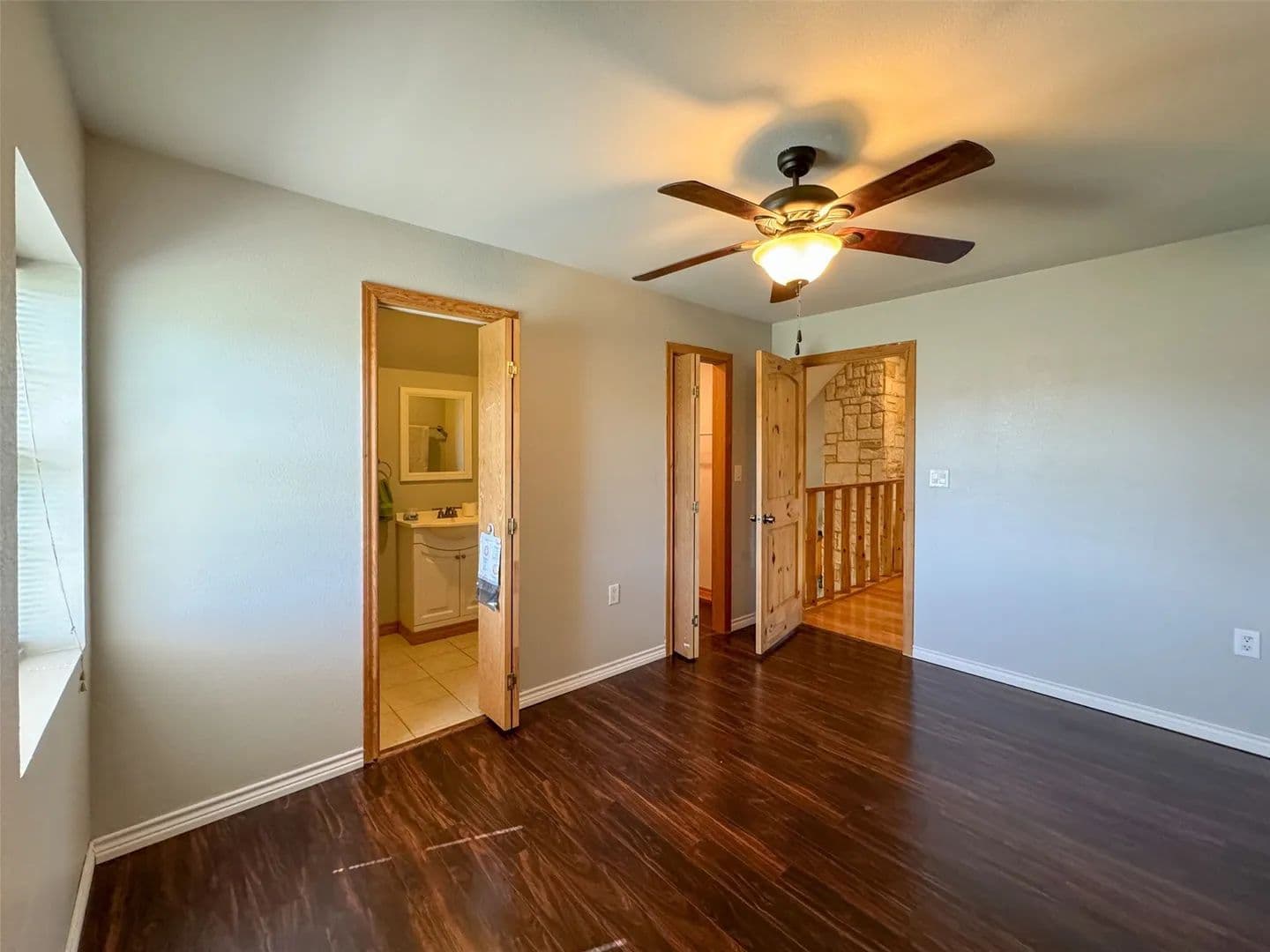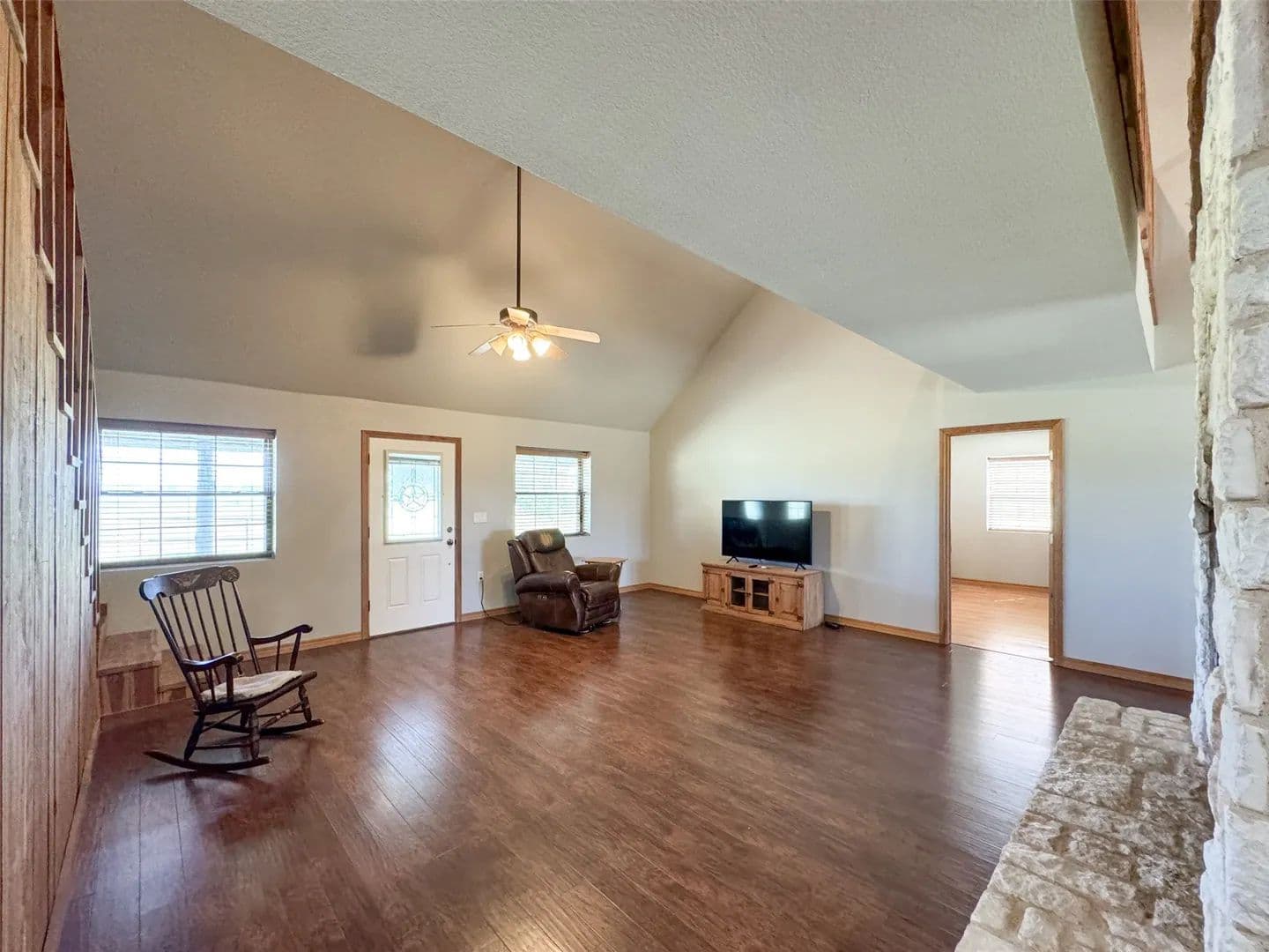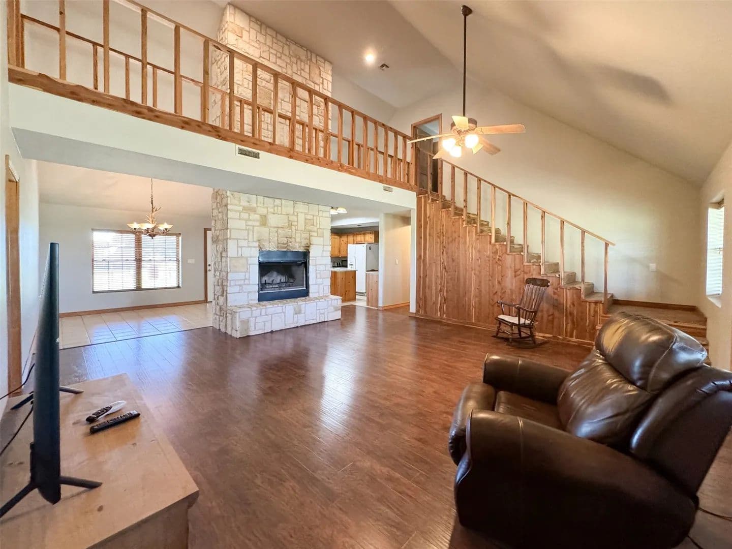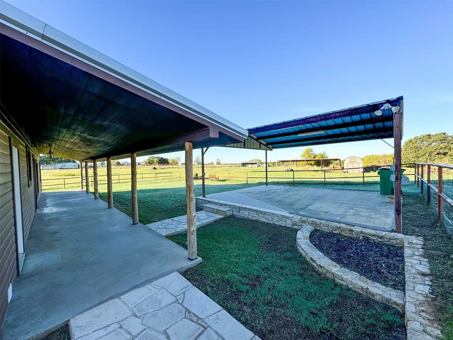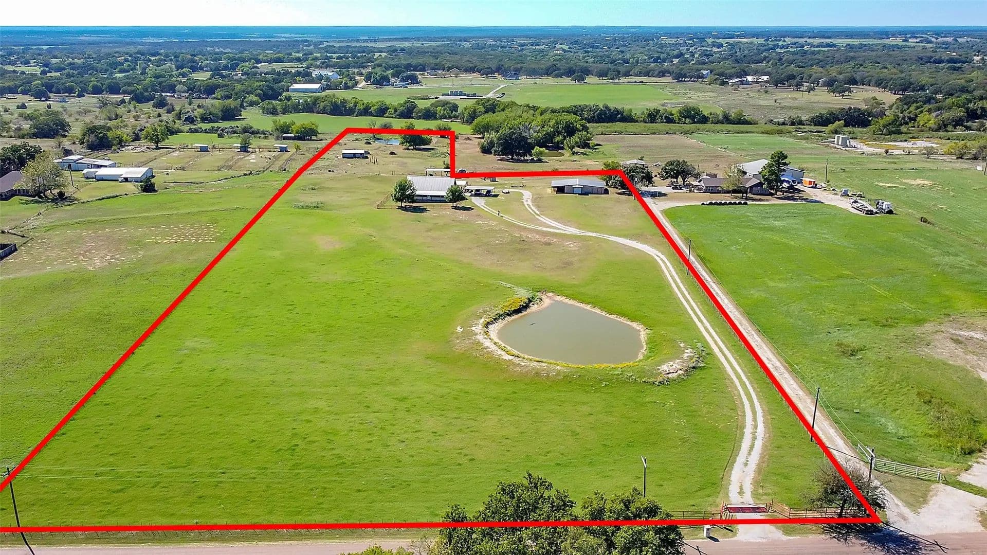 This Beautiful 10.743-acre AG-exempt property offers peaceful living for those seeking space and privacy. The home features an open floorplan with 4 bedrooms, 3.5 baths and vaulted ceilings. A spacious family room boasts a stunning 2-story stone fireplace. The master suite and an additional bedroom are located downstairs, while two bedrooms upstairs each have en-suite bathrooms and walk-in closets. Recent updates include fresh paint, granite countertops in the kitchen, quartz in the master bathroom and new plumbing fixtures. Built with ICF block, the home is both energy-efficient and quiet. Sit back and enjoy the outdoors or entertain with large covered porches at the front and back. The property also features a 40' x 45' metal barn complete with an office and loafing shed plus additional out buildings and 2 ponds that have never gone dry. The land is fully fenced, providing ample space for kids, pets, or livestock to roam freely. Main barn (40 X 30) has concrete floor with electricity, no water and a 20 X 12 office. South side has a loafing shed (40 X 15) no concrete, could easily accommodate 3 stalls. The north side (40 X 15) storage area with double doors and concrete floor. There is a breaker box to add more electricity to the sides if needed. The smaller barn in the back of the property is set up for 2 stalls with feed-tack room with concrete floor, no electricity or water.