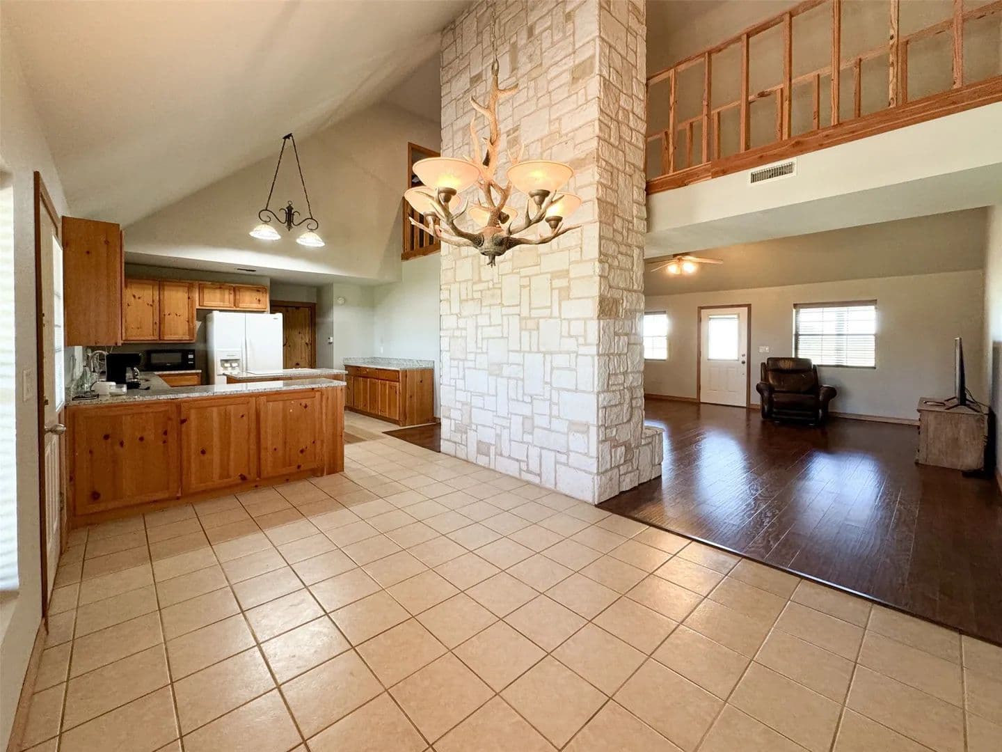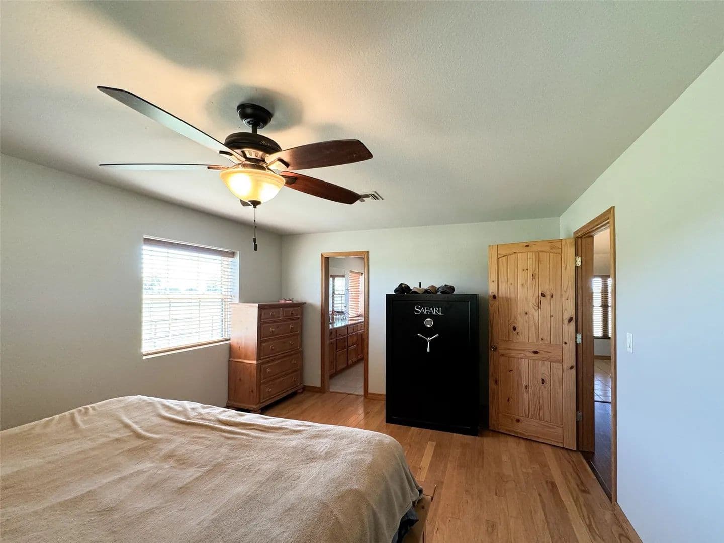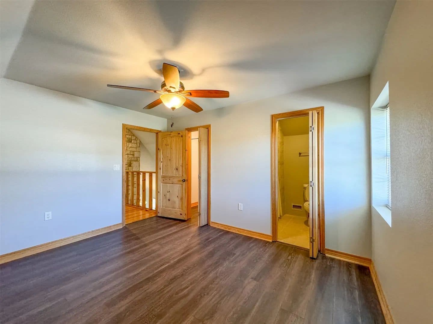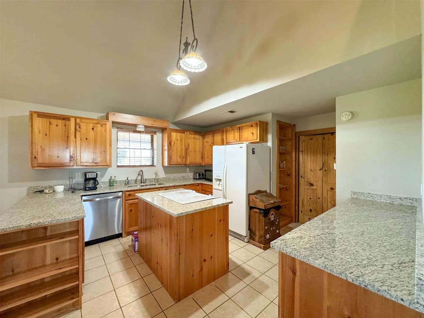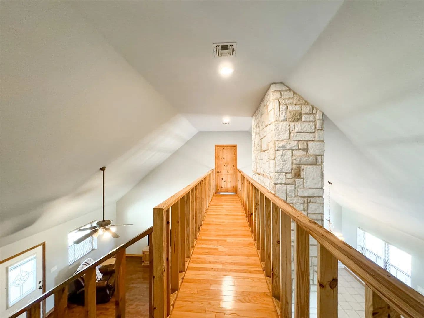 This Beautiful 10.743-acre AG-exempt property offers peaceful living for those seeking space and privacy. The home features an open floorplan with 4 bedrooms, 3.5 baths and vaulted ceilings. A spacious family room boasts a stunning 2-story stone fireplace. The master suite and an additional bedroom are located downstairs, while two bedrooms upstairs each have en-suite bathrooms and walk-in closets. Recent updates include fresh paint, granite countertops in the kitchen, quartz in the master bathroom and new plumbing fixtures. Built with ICF block, the home is both energy-efficient and quiet. Sit back and enjoy the outdoors or entertain with large covered porches at the front and back. The property also features a 40' x 45' metal barn complete with an office and loafing shed plus additional out buildings and 2 ponds that have never gone dry. The land is fully fenced, providing ample space for kids, pets, or livestock to roam freely. Main barn (40 X 30) has concrete floor with electricity, no water and a 20 X 12 office. South side has a loafing shed (40 X 15) no concrete, could easily accommodate 3 stalls. The north side (40 X 15) storage area with double doors and concrete floor. There is a breaker box to add more electricity to the sides if needed. The smaller barn in the back of the property is set up for 2 stalls with feed-tack room with concrete floor, no electricity or water.