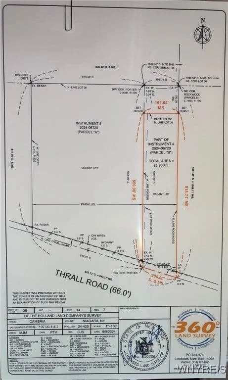 DESIRABLE 3.9 ACRE PARCEL IN AN AREA OF NICE HOMES, ON THRALL ROAD IN THE TOWN OF CAMBRIA. BEAUTIFUL PIECE TO BUILD YOUR NEW HOME! PARCEL MEASURES 200' X 918'. STARPOINT SCHOOLS. SIGN IN PLACE. DRIVE BY TODAY!