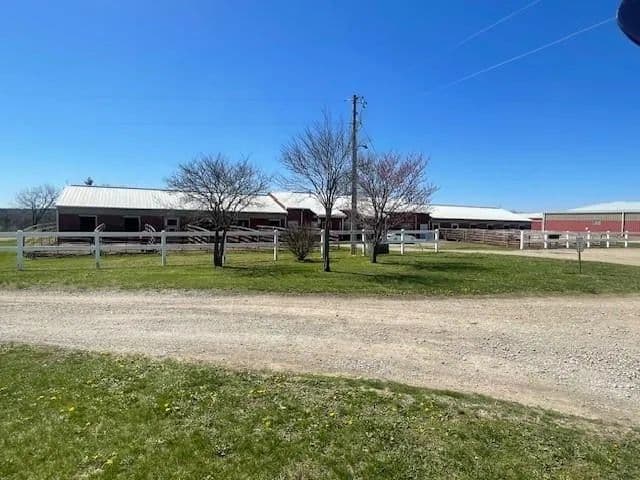 If you've ever dreamed of living with the independence showcased in a show like Yellowstone, this property offers you that chance. Enjoy life in your very own 3,500 sq ft gorgeous home, complete with a secluded private pool for relaxation. 133 acres, a spacious 3,866 square foot lodge look home featuring 4 bedrooms and 3 full bathrooms and 2 half baths, 3,800 feet of river frontage, pool, a 23,000 square foot indoor arena, a caretaker apartment, a nice veterinarian office or tack/feed shop, a 7,700+ square foot event center, multiple outbuildings, open pastures, deep woods, enough stalls for 30+ horses, 115x200 Indoor arena with caretaker apartment, 150x300 outdoor arena set up for roping, and so much more.