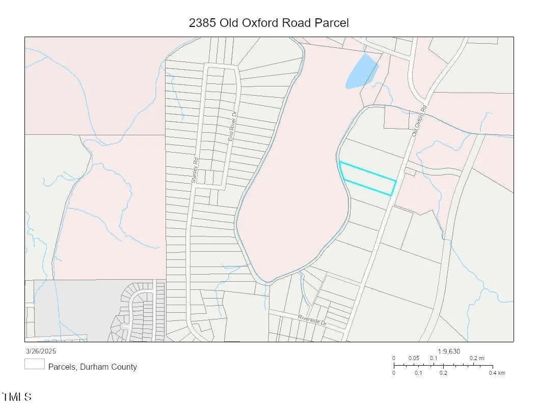 A wonderful parcel located in the Eno River. It is waterfront and a rarity in this area. Most of the land is under conservation nearby. There is rolling top to the river and a sewer easement at the road front that is force main so not assessible. Septic require with well. There is another parcel adjacent by the same owner if you interested in either or both. Zoing is RS-20 with some flood plain along riverfront but does not affect a homesite. Take a look at this beautful rare listing on the Eno River in North Durham