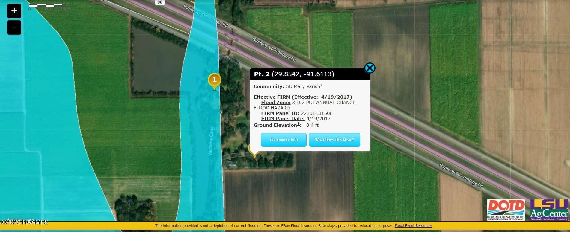 Great rural lot with easy access to Hwy 90 ffrom Dumesnil road. Lots of trees and in a NON-Hazardous flood zone X - 0.2%. There's a canal that runs from a pond down the right side of the property.