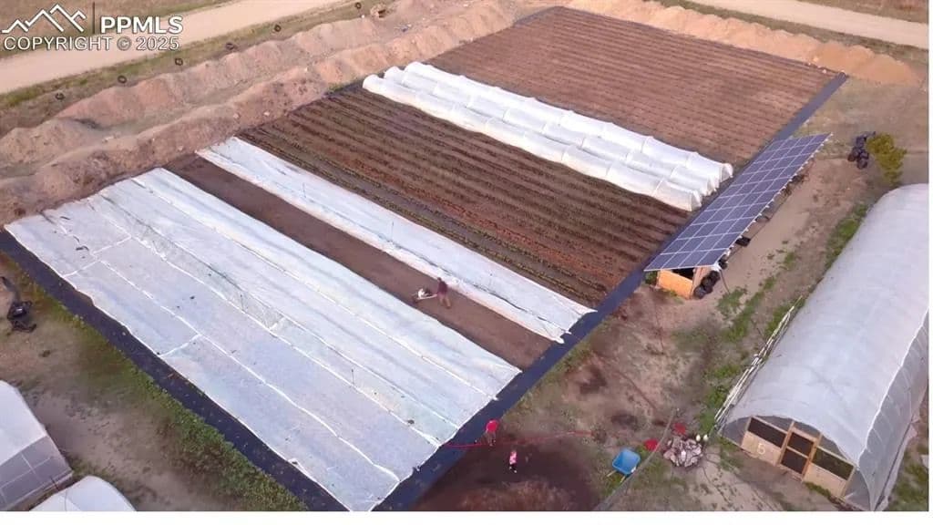 Discover your dream farm in Peyton, Colorado! This established, regenerative, organic, sustainable, no-chemical, no-tillCommunity Supported Agriculture (CSA) farm sits on 40 acres and offers a unique opportunity for those passionate aboutfresh produce and community. The 1288 sq ft, 3-bed, 2-bath home provides ample living quarters, while the extensiveinfrastructure supports a thriving farm business. Boasting the best soil in Colorado, this farm is ready for you to take it tothe next level. Imagine yourself cultivating healthy food, fostering community, and even harvesting your own honey on thisincredible property. The farm features 14 greenhouses totaling 31,000 sq ft, including two heated nurseries, one with aconcrete floor. A climate-controlled microgreen center ensures year-round production, and a dedicated washroom simplifiesprocessing. Two cool cellars provide ample storage, and a barn with concrete floors offers versatile space. Both acommercial and a residential well provide ample water, and full irrigation serves all greenhouses. A robust 2600-kilowattsolar power system ensures sustainable operations. In total, you'll find 3,700+ sq ft of barns, offices, sheds, cool cellars,and a washroom. The soil here is exceptional, perfect for organic, no-till farming. The farm also features a small apiary,ready for you to produce your own honey. Strong community ties are evident with a weekly farmers market held on thepremises during warmer months, bringing dozens of local vendors. At its peak, this CSA served 450 families! A fun additionis an old school bus transformed into a children's play area, complete with a sandbox, climbing net, and zipline. This is morethan just a farm; it's a lifestyle waiting to be embraced. This established CSA is ready for its next passionate owner tocultivate healthy food, foster community, and live in harmony with nature. Check out the Virtual Tour Page!