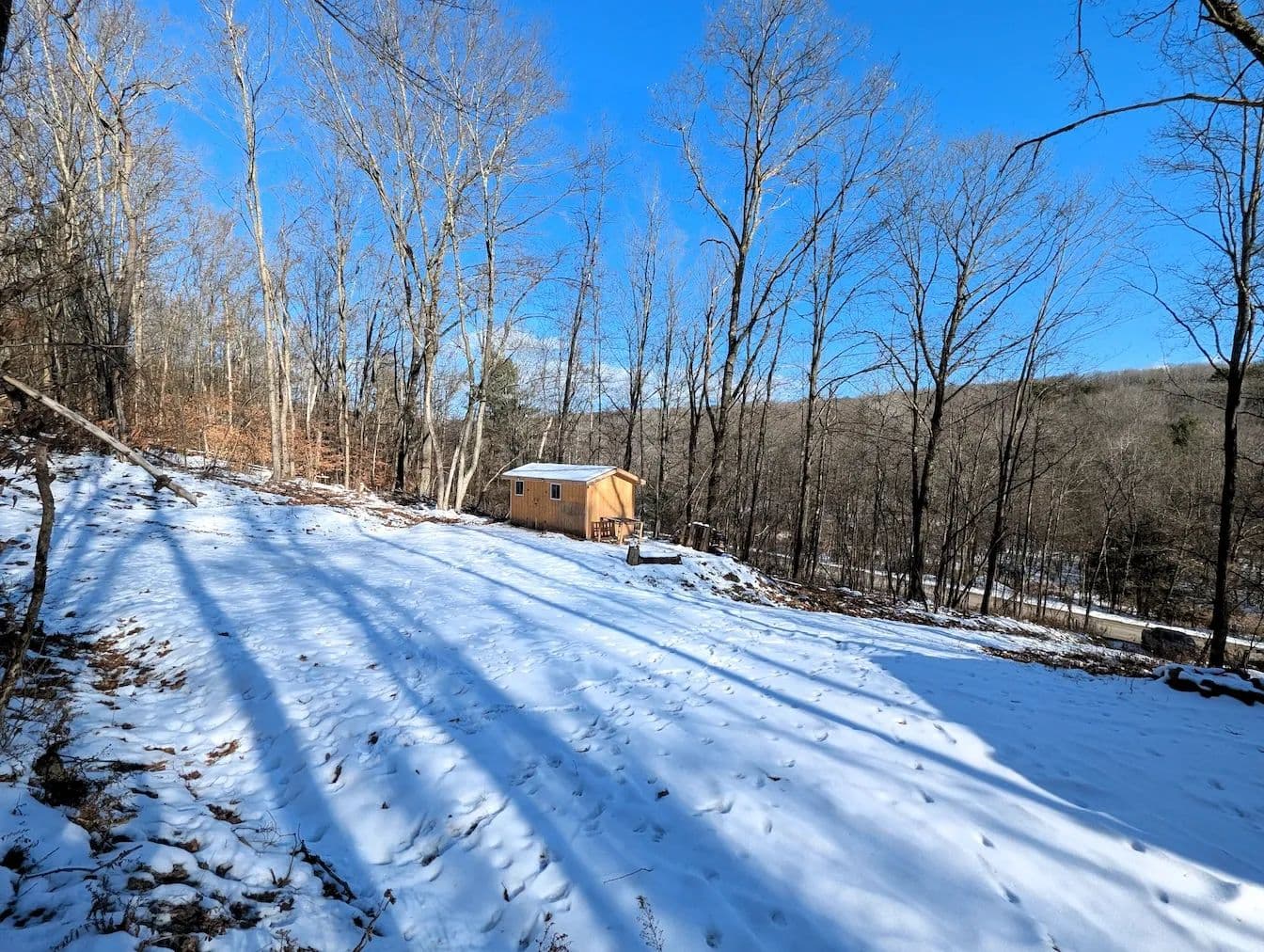 Situated along a quiet paved road, this completely wooded property offers an excellent setting for a camp, cabin, or full-time residence. A newer gravel driveway provides gated access to a level clearing, creating a ready-to-use building site with utilities conveniently located across the street. Additional improvements include a small generator shed and a larger storage shed for keeping you and your gear dry between outdoor adventures.