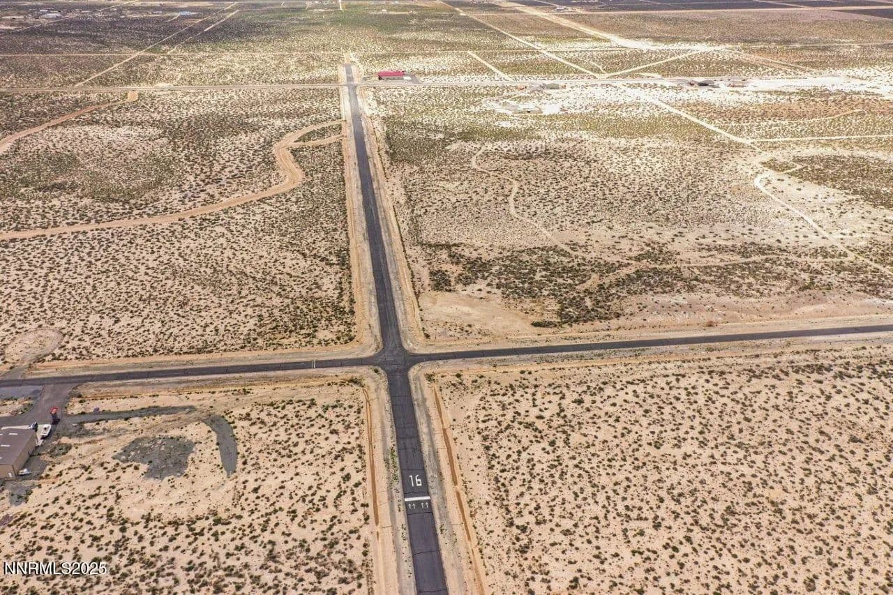 Flying Eagle Airpark is a truly unique aviation community with only 16 parcels, each 40 acres, spread across 640 acres of pristine Northern Nevada. Residents enjoy security, privacy, and incredible panoramic views of the Sierra Nevada and surrounding high desert landscape. Two paved runways serve the community: 16/34 (4,700' x 35') and 7/25 (4,300' x 25'), available for private use exclusively by owners. Electricity is stubbed to the lot, and the generous acreage provides room for multiple homes, hangars, and recreational spaces.