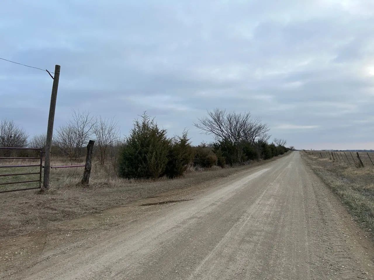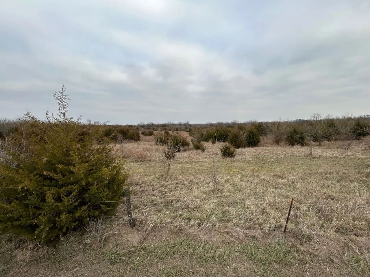 The property features a gated entrance and is fully perimeter fenced, having previously been grazed for cattle years ago. It is located along the east side of X Road, a well-maintained gravel road, and is conveniently situated approximately 15 minutes from Meriden, KS, and just 30 minutes from Topeka.