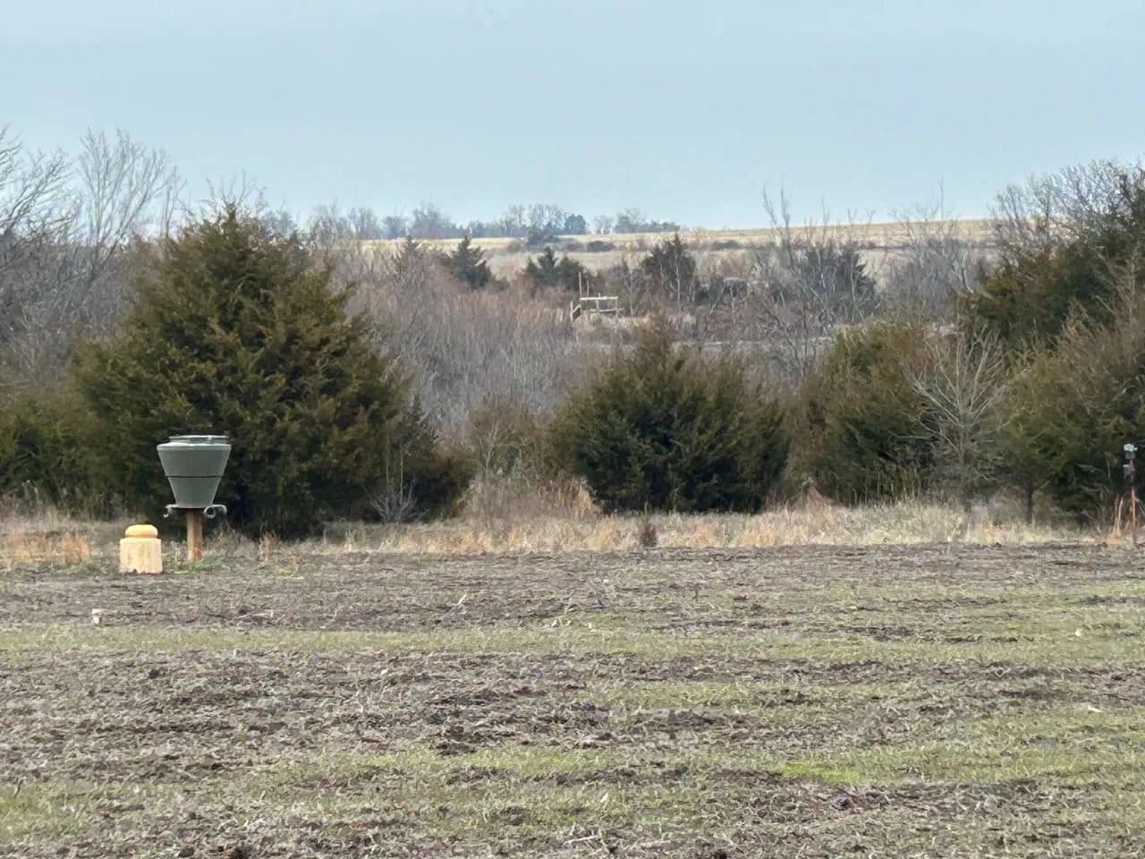 The habitat is dialed in with a diverse mix of thick cedar cover, native grasses, and timber, creating outstanding bedding, security, and daylight movement. A centrally located pond provides a dependable year-round water source, while two strategically positioned 2-acre food plots concentrate deer movement exactly where you want it. Each plot is outfitted with a brand-new, never-hunted Banks Stump 4 Limited Edition elevated blind and a 600-lb Banks feeder, both of which have been consistently maintained and kept full since last summer.