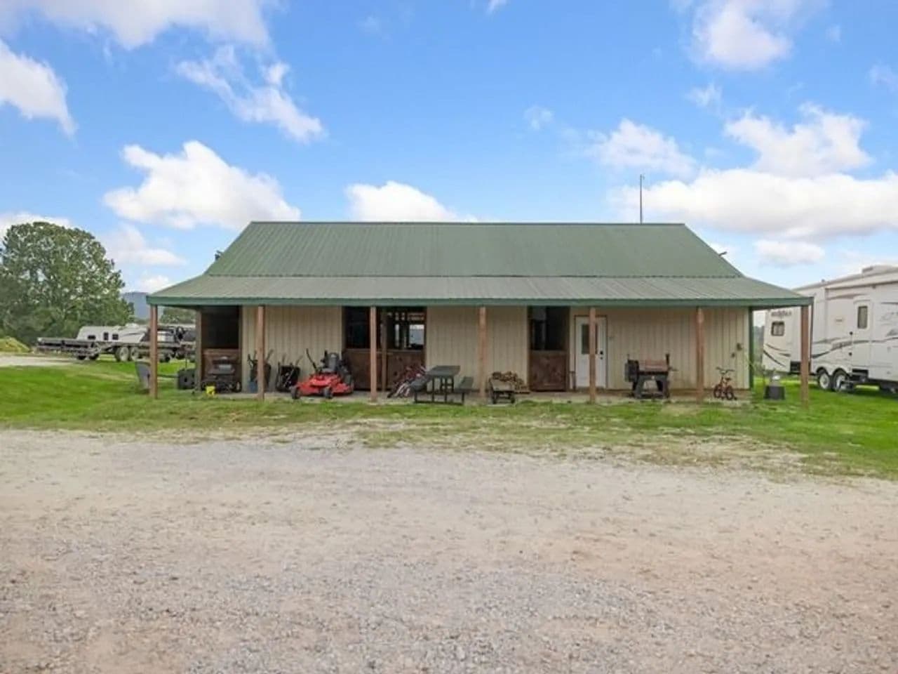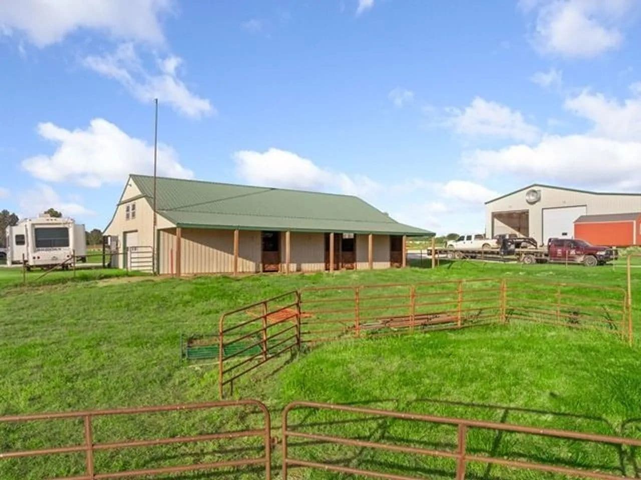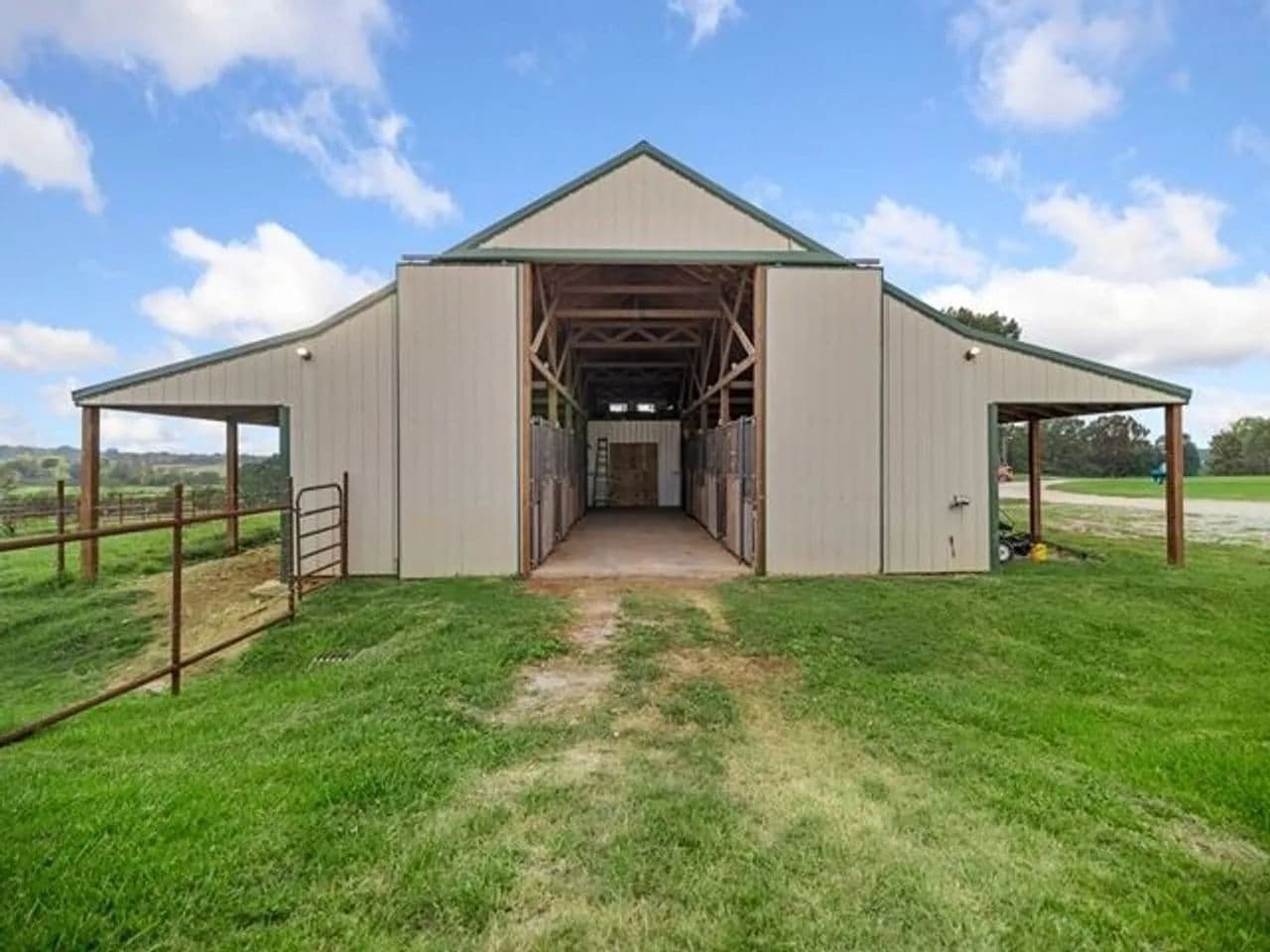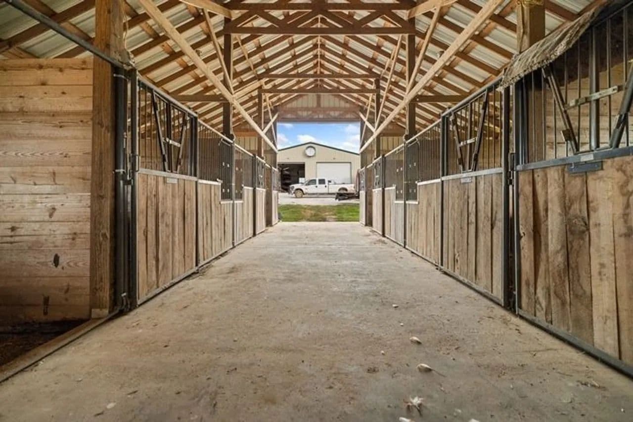 Horse enthusiasts will fall in love with the equestrian facility, featuring a 36x60 barn complete with eight 10x12 walk-out stalls, a 20x36 finished area with wash stall, feed and tack room, and 10-foot lean-tos on both sides. Designed with functionality and animal well-being in mind, the entire setup is ready for your horses or livestock.