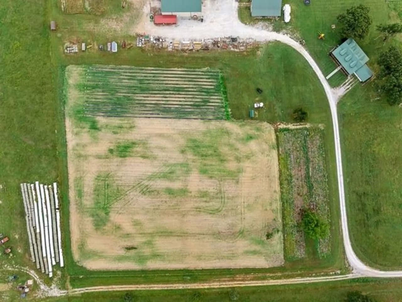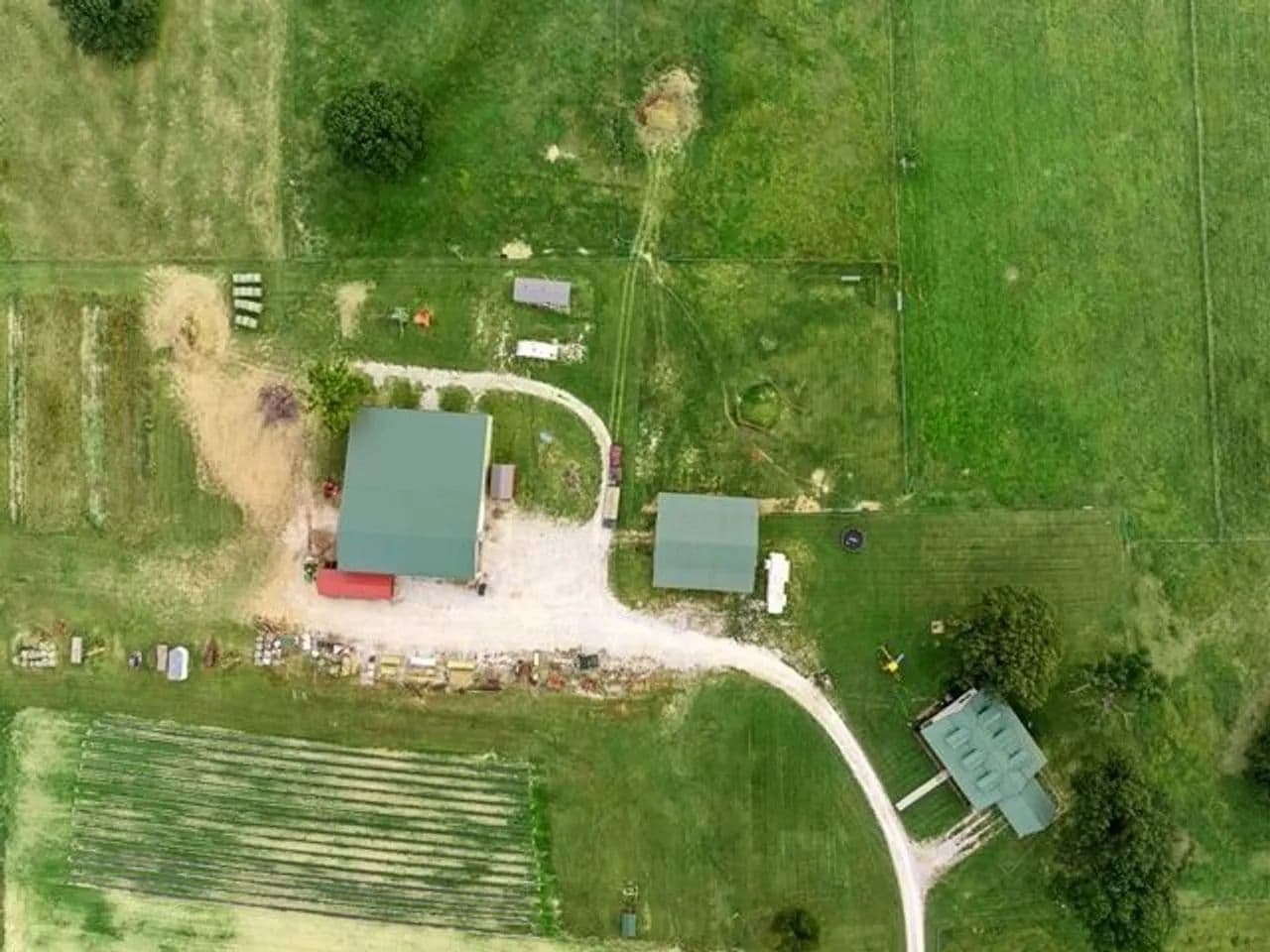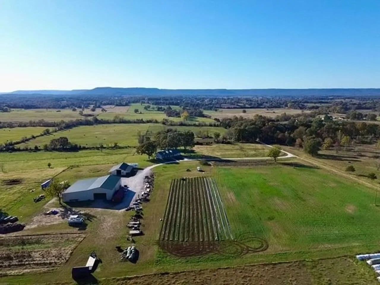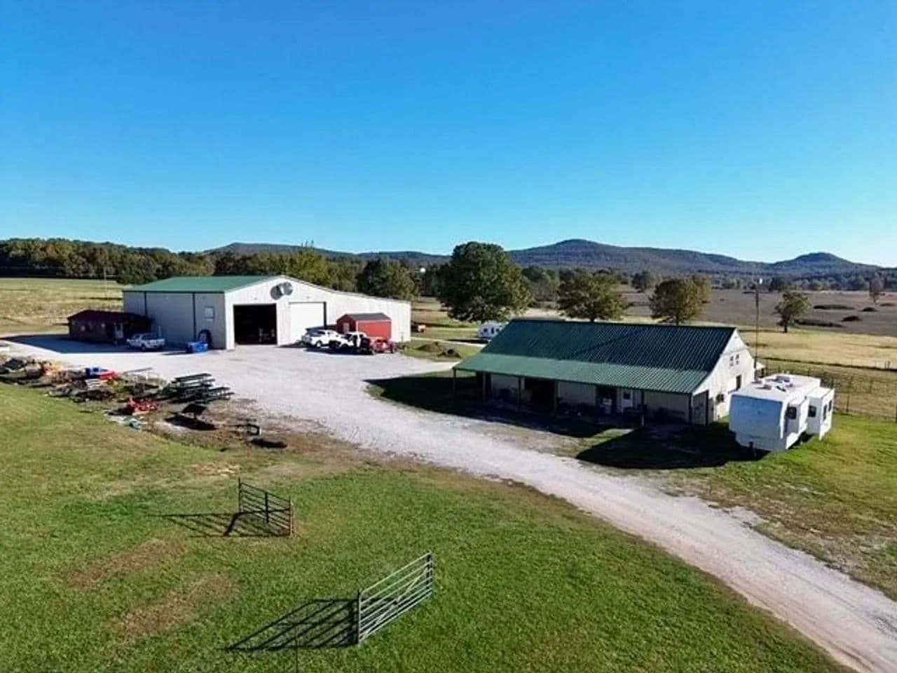The property is fully fenced with multiple gates and cross-fencing, ensuring both ease of movement and livestock management. A gravel lane leads you through the grounds, which include Two RV hookups with septic power and water, adding both convenience and income potential. The high-quality tillable acreage is currently home to a thriving strawberry patch—a testament to the fertile, well-maintained land.