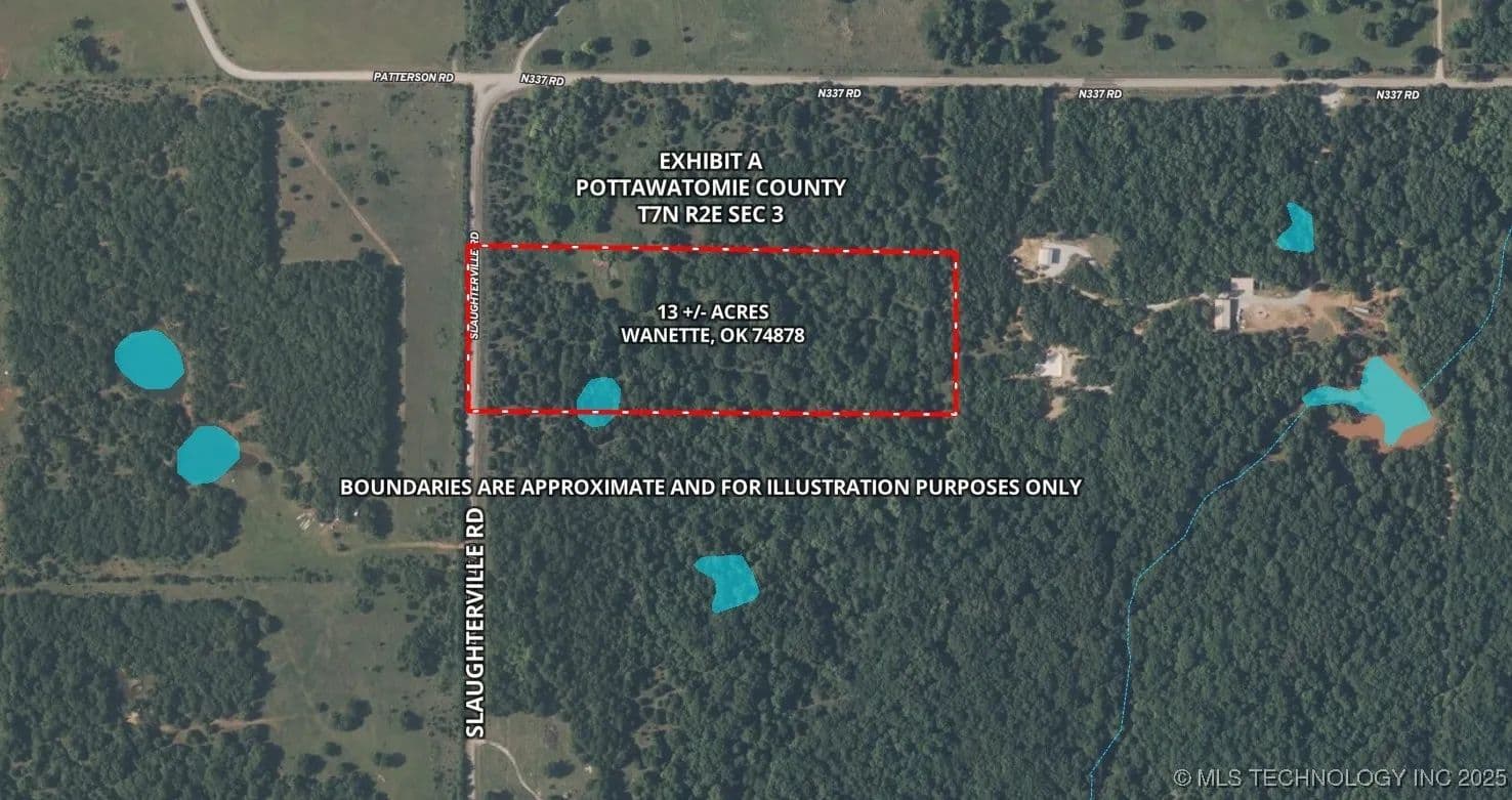 Discover 13 +/- acres of land in Wanette, complete with a pond and ideally situated less than 20 miles from I-35 and I-40. Just 25 miles from Norman and under an hour from the Oklahoma City Metro, this property offers a mix of mature hardwoods and diverse topography, creating excellent wildlife habitat and the perfect setting for outdoor enthusiasts. With ample opportunities for recreational development—such as trails, food plots, and more—this property is a versatile canvas ready for your vision. The area is known for its abundant wildlife, including trophy whitetail deer, presenting an exciting chance for hunting enthusiasts. The surrounding natural beauty, combined with the close proximity to the Lexington Wildlife Management Area, enhances the potential for an extraordinary outdoor experience. Access is straightforward, with well-maintained roads leading to the property. Whether you’re looking to build a cozy cabin, a family home, or a weekend getaway, this land provides the perfect backdrop for your dream retreat. If you’re in search of a remarkable 13 +/-acre property with infinite potential that offers both seclusion and accessibility, then don’t miss this opportunity. Contact us today for more information and to schedule a private tour!