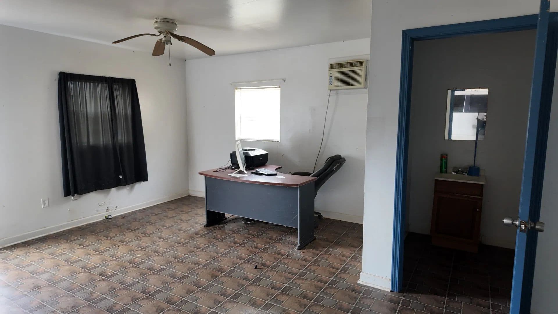 The shop features four large roll-up doors, a functional office, a waiting/break room, and a restroom, providing an efficient layout for daily operations. The upstairs level includes a one- bedroom, one-bathroom apartment—ideal for on-site living or rental income.