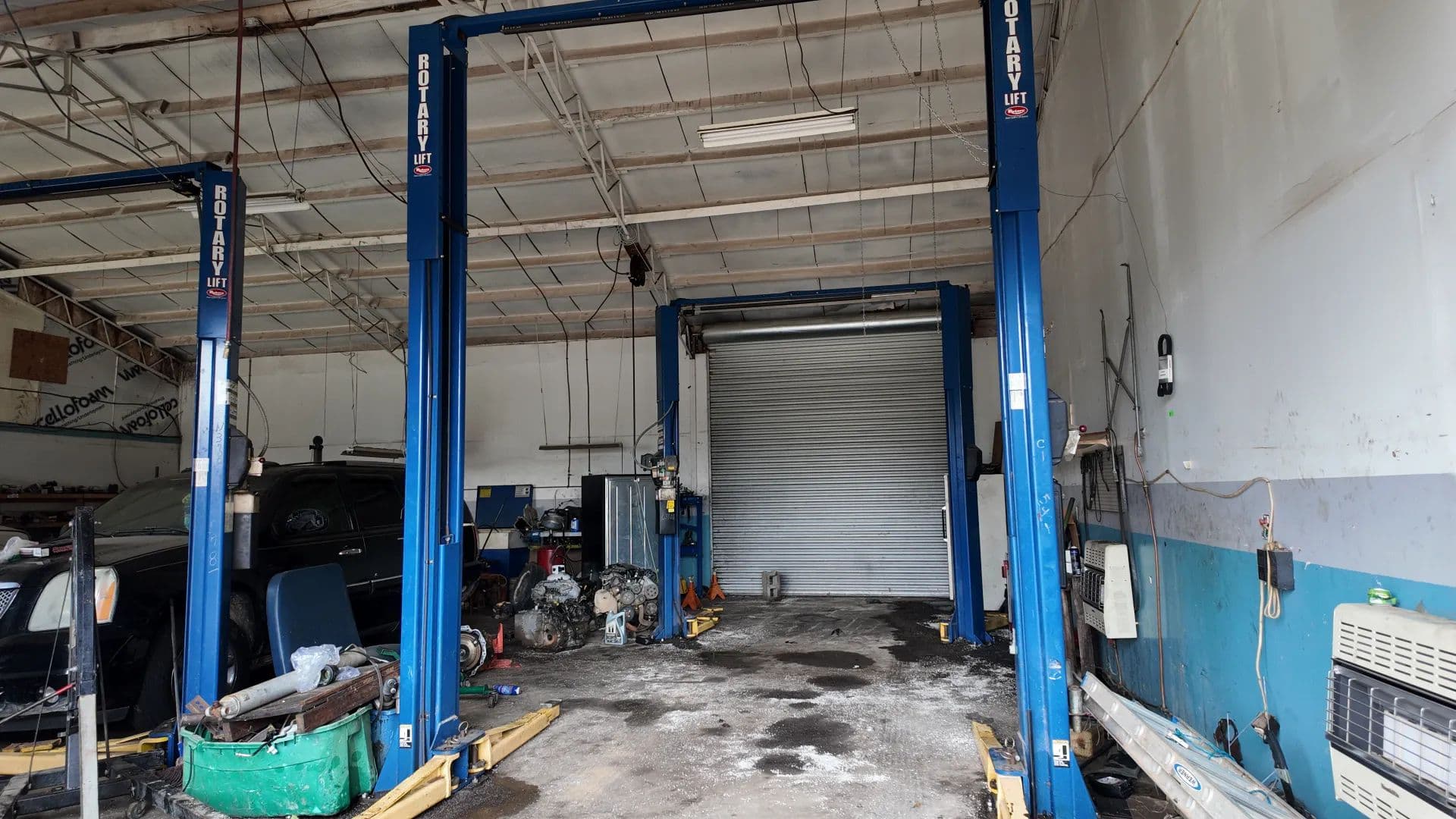 Included with the sale are three heavy-duty automotive lifts and additional equipment, making this property a turnkey opportunity suitable for automotive repair, service, or similar commercial use.