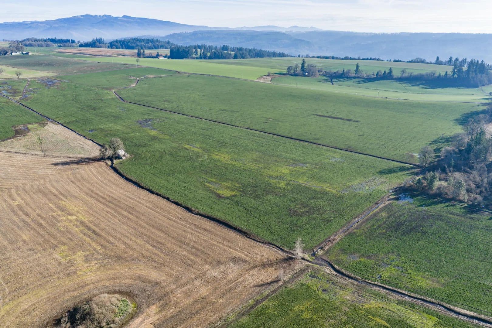 Established grass seed farm sitting minutes from Stayton, Oregon. Includes a very solid house with excellent views across the valley and good outbuildings. Versatile Jory and Nekia soils. Continue grass seed production or pivot to Christmas trees, cattle, sheep, or previously grown crops such as wheat, oats, clover, alfalfa, and hay. Evidence of extensive drain tiling throughout. This is a practical investment for operational flexibility.