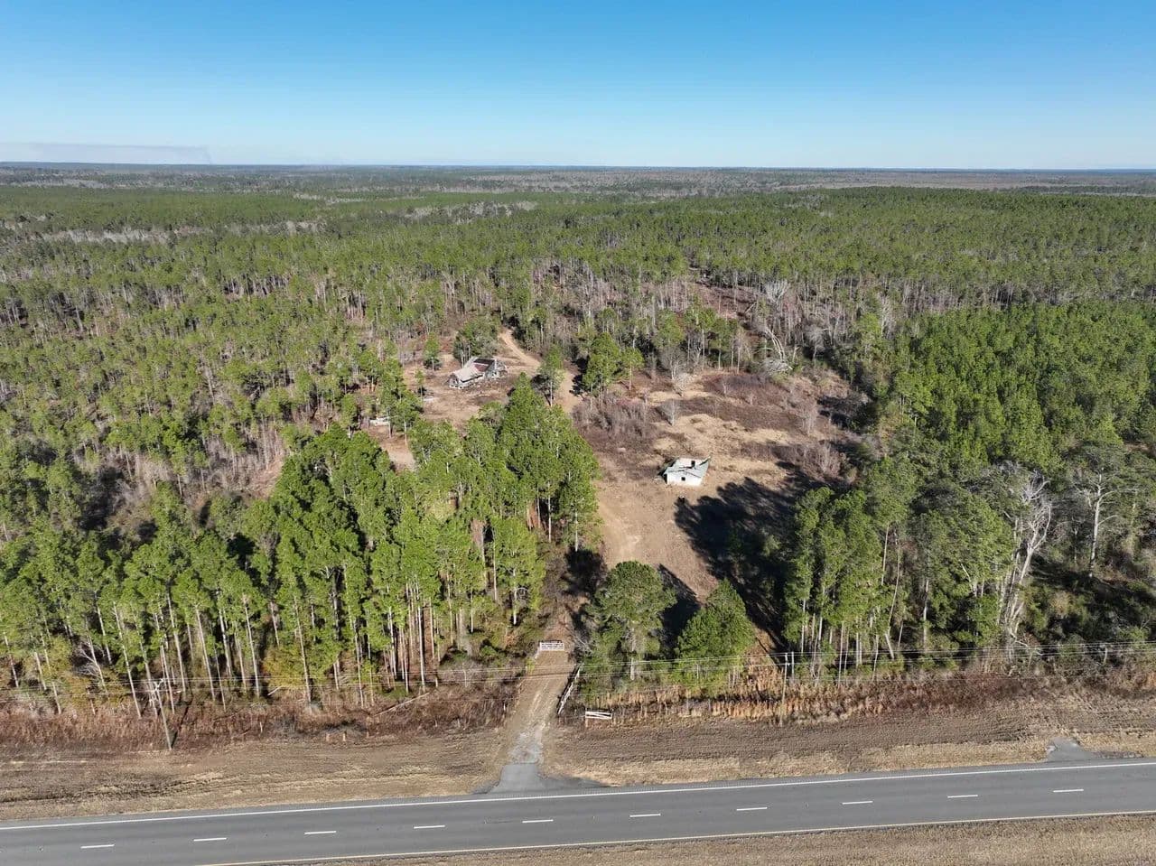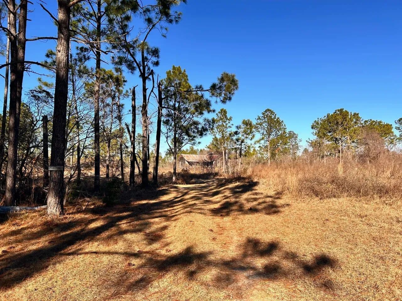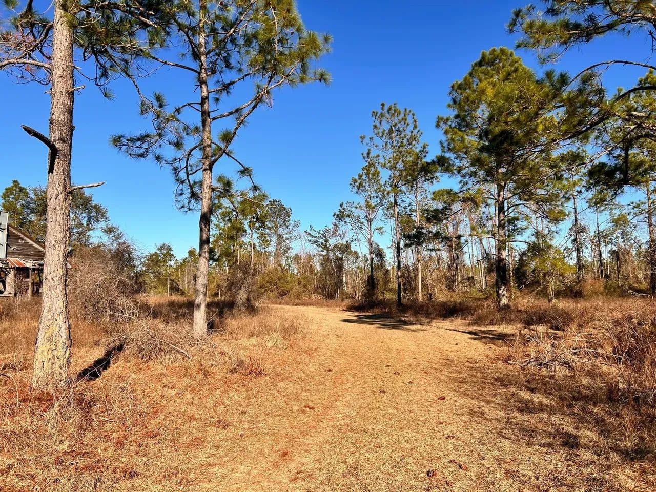 The land features a well-established internal road and trail system, allowing easy navigation throughout the property. Power is readily accessible, making this tract suitable for recreational use, a hunting retreat, or future improvements. A small hunting camp is already in place.
