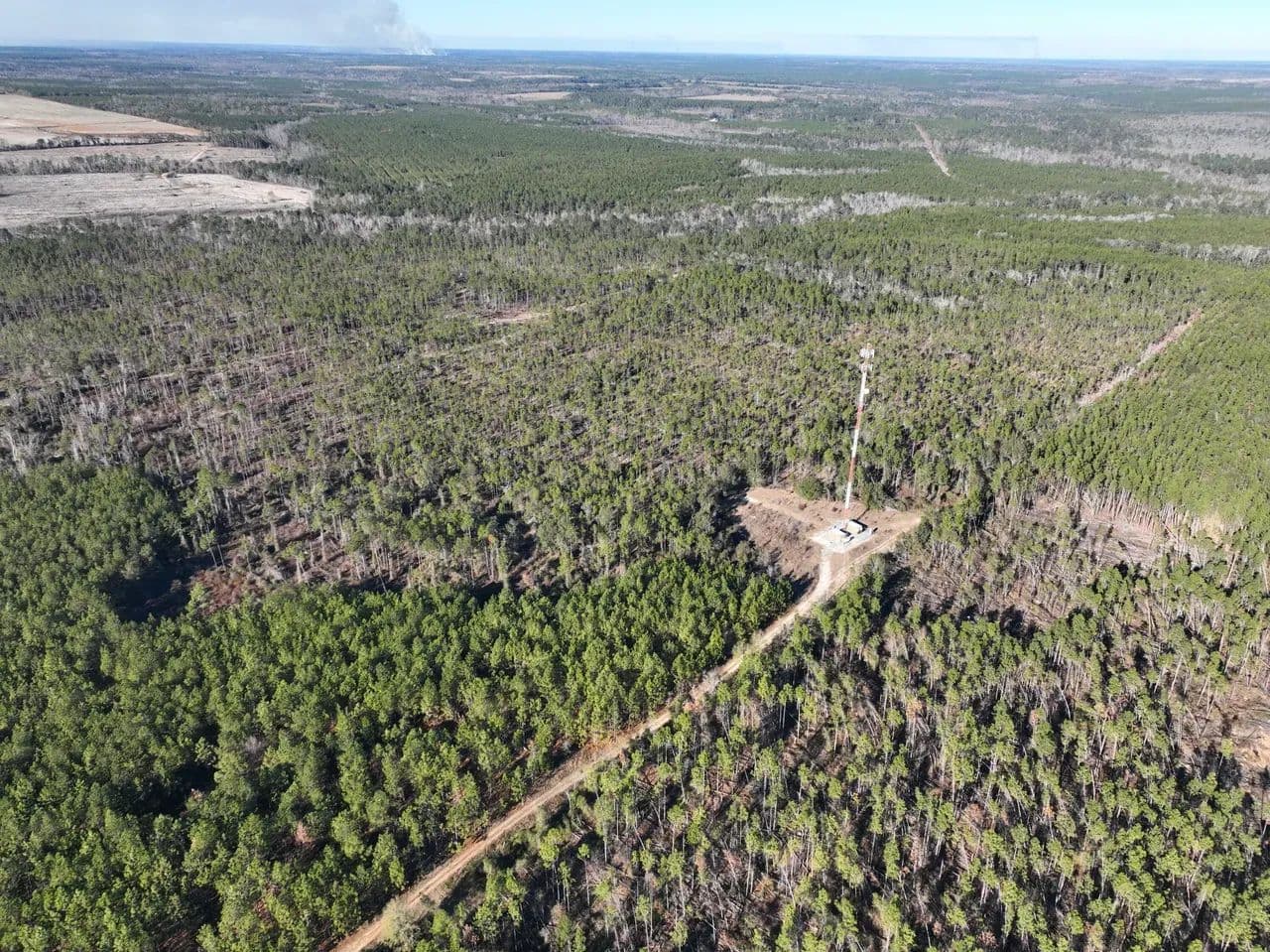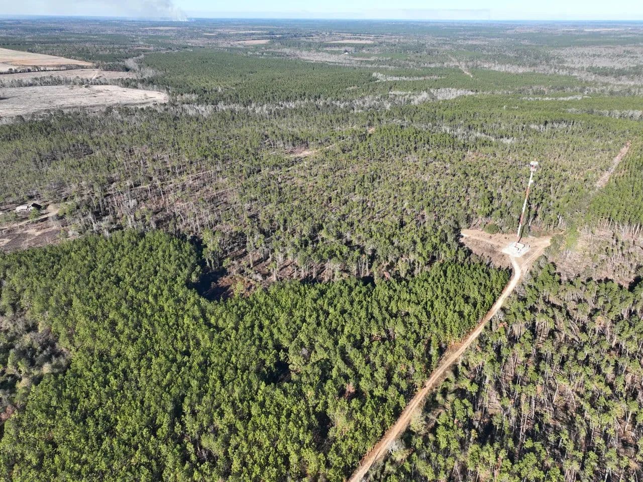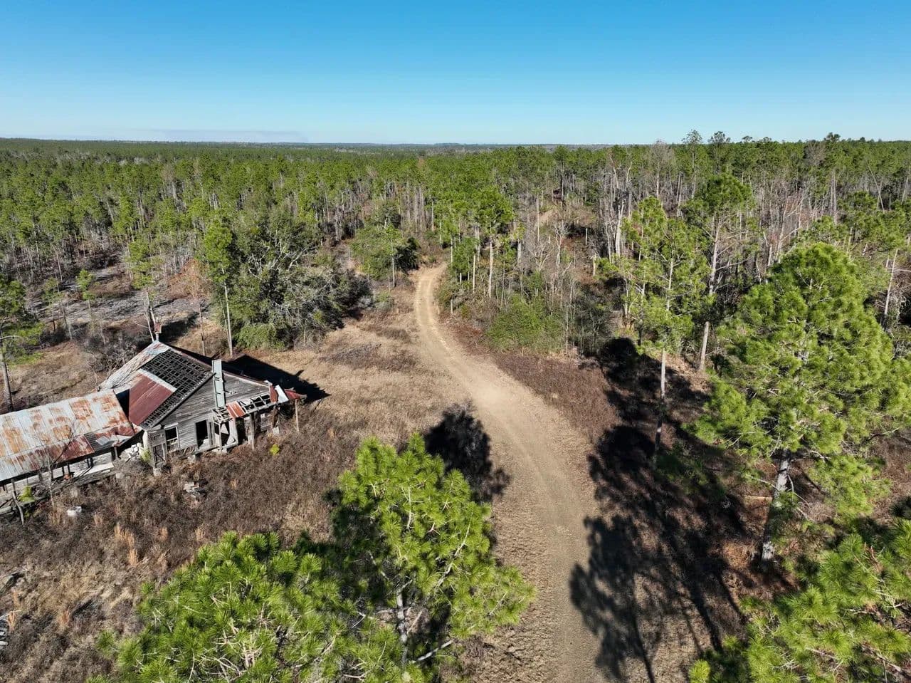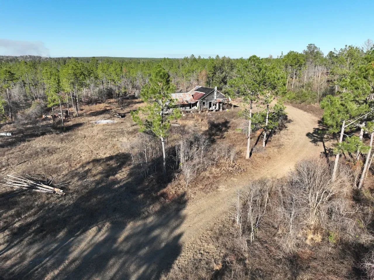 The land features a well-established internal road and trail system, allowing easy navigation throughout the property. Power is readily accessible, making this tract suitable for recreational use, a hunting retreat, or future improvements. A small hunting camp is already in place.