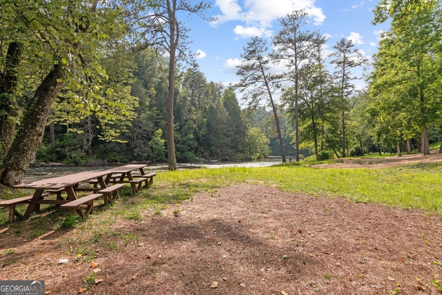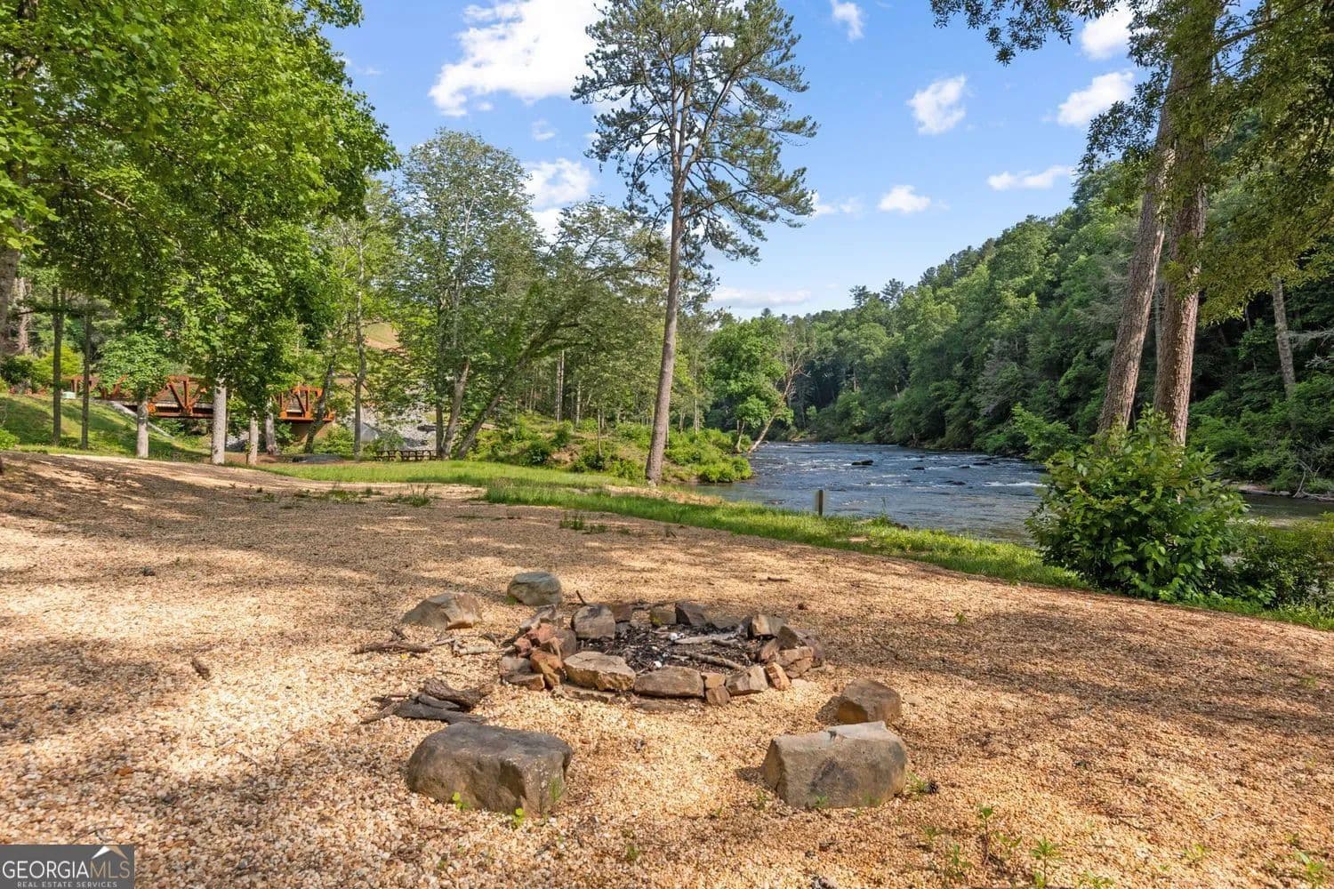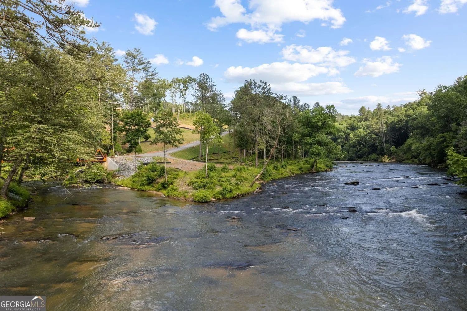 Welcome to High River one of Ellijay's newest gated mountain resort community, now actively building and quickly becoming one of North Georgia's most desirable destinations for full-time living, second homes, and investment properties. As you pass through the gates, you're greeted by a charming mountain setting with preserved natural beauty and resort-style amenities throughout the community. Residents enjoy lakeside parks and pavilions, a riverside lodge with Coosawattee River access, a private fishing lake, scenic walking trails, fire pit gathering areas, and thoughtfully maintained common spaces that enhance both lifestyle and property value. This 3.28-acre homesite has been professionally cleared and graded, offering an ideal foundation for a basement-style mountain home. Relax on your future deck while listening to the peaceful sounds of Mountaintown Creek nearby. With no required timeline to build, you can secure the lot now and build when ready. Short-term and long-term rentals are permitted making this an excellent opportunity for builders and investors seeking strong rental demand in a high-amenity gated community. Paved roads, underground utilities, community water, and high-speed fiber optic internet provide modern convenience while preserving the authentic mountain experience. The Mountains are Calling you!