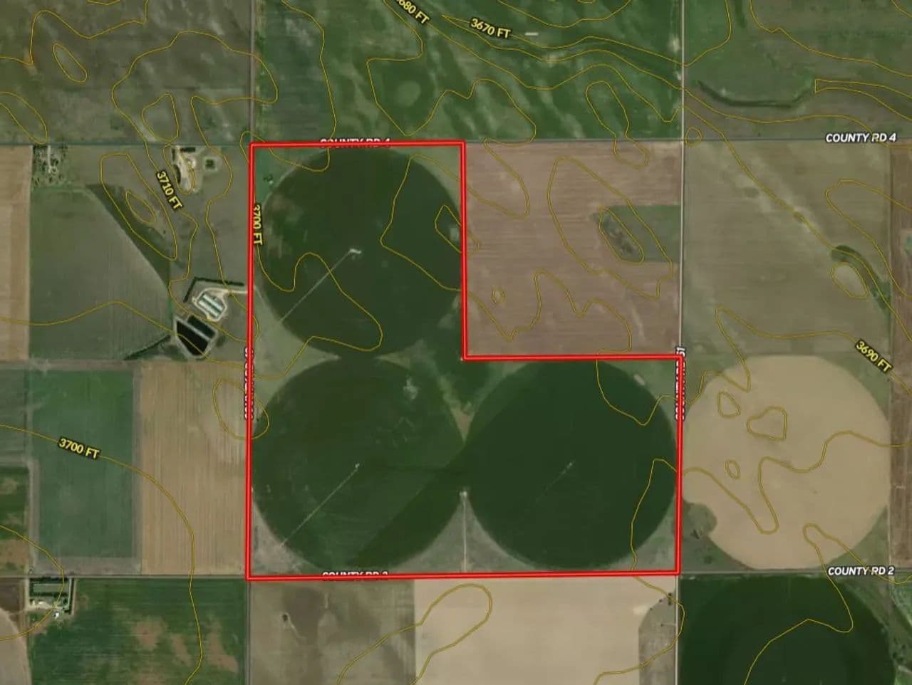 Tract #3 consists of irrigated cropland with irrigated/dryland corners and paved road access. This parcel is turn-key ready for the farmer who is looking to add to an existing operation or an investor looking to add to their portfolio. Consisting of mostly Richfield loam, 0 to 3 percent slopes Class 2c soil the parcel has good proven crop yield history. Crops grown on the property and in the area include Wheat, Milo, Millet, and Corn. Early access for field work is available upon earnest money deposits on all of the fallow acres with possession on the planted wheat acres (Dryland Pivot Corners) after the 2026 harvest. The Irrigation Pivots are supplied by Well Permit #18665-FP with well measurement verification on 6/19/2025 that showed an average of 717.9 GPM, Well Permit #20174-FP with a well measurement verification on 6/19/2025 that showed an average of 541.6 GPM, and Well Permit #34155-FP with a well measurement verification on 9/24/2024 that showed an average of 474 GPM. There is an additional pivot located in the center of the three pivots that increases the total irrigated cropland to 405.6 acres per FSA records. In recent years maintenance and several upgrades have been completed on the pivots/wells (receipts available upon request). FSA base acres consist of 373.10 Corn with a PLC Yield of 146 and 29.60 Wheat with a PLC Yield of 44. Wildlife frequently found on the property and in the area includes deer, antelope, upland birds, and small game. Seller's Owned Mineral Rights to be Included with the surface (if any). Give us a call today for more information or to register to bid on this exceptional opportunity.