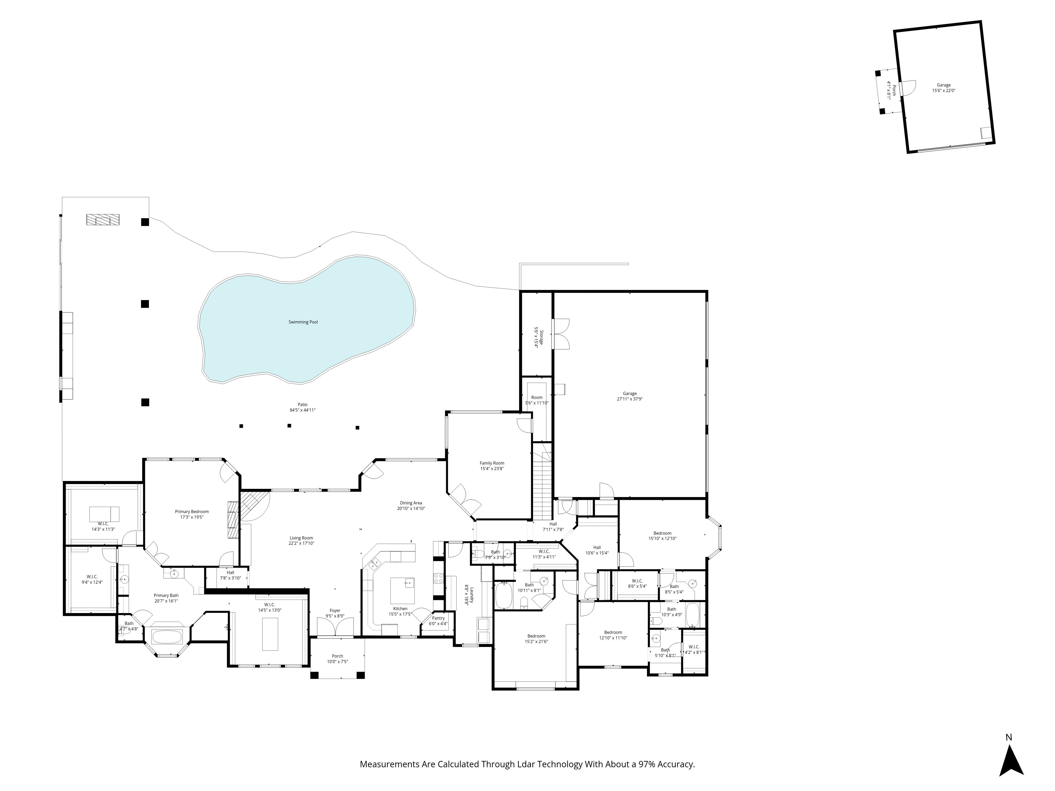 Private 20-Acre Luxury Estate in Exclusive Enclave: Experience the pinnacle of country luxury on this magnificent estate, situated in a premier area known for its sprawling ranches & ultimate privacy. Behind the secure gated entry, a sweeping concrete circle drive leads you to a custom-built masterpiece. Inside, the home opens to a breathtaking main living area anchored by soaring cathedral ceilings, massive beams, & a floor-to-ceiling rock fireplace, creating a sense of rugged elegance. For the culinary enthusiast, the chef’s kitchen shines with granite countertops, a massive island with a prep sink, breakfast bar, wall oven, walk-in pantry, & a cooktop with professional-grade vent set into a stunning masonry alcove. A second living area with elegant French doors offers the perfect footprint for a home office. Above the garage, a versatile third living space—complete with a kitchenette & full bathroom—serves as an ideal guest suite, game room, or fifth bedroom. The primary wing is a true sanctuary, featuring a gas log fireplace, trey ceilings, & a spa-like ensuite with a soaking tub, heated floors & walk-in shower. This private retreat is anchored with separate vanities & three massive walk-in closets with custom cabinetry, including coffee bar & dedicated laundry hookups. In the spacious laundry room, you'll find granite countertops, sink, lots of storage, & room for 2nd fridge. Thoughtful updates throughout. The backyard is a resort-style retreat. Spend evenings under the large cabana with an outdoor kitchen & wood-burning fireplace situated, alongside a sparkling in-ground gunite pool. Whether hosting a summer gala or enjoying a quiet winter night by the fire, this space is unmatched. Plenty of parking with attached 3-car garage. Detached garage ideal as a workshop, home gym, or storage. Remainder of pristine land offers a rare blend of open space, scattered trees, fishing pond & the exclusivity of a high-end ranch community!
