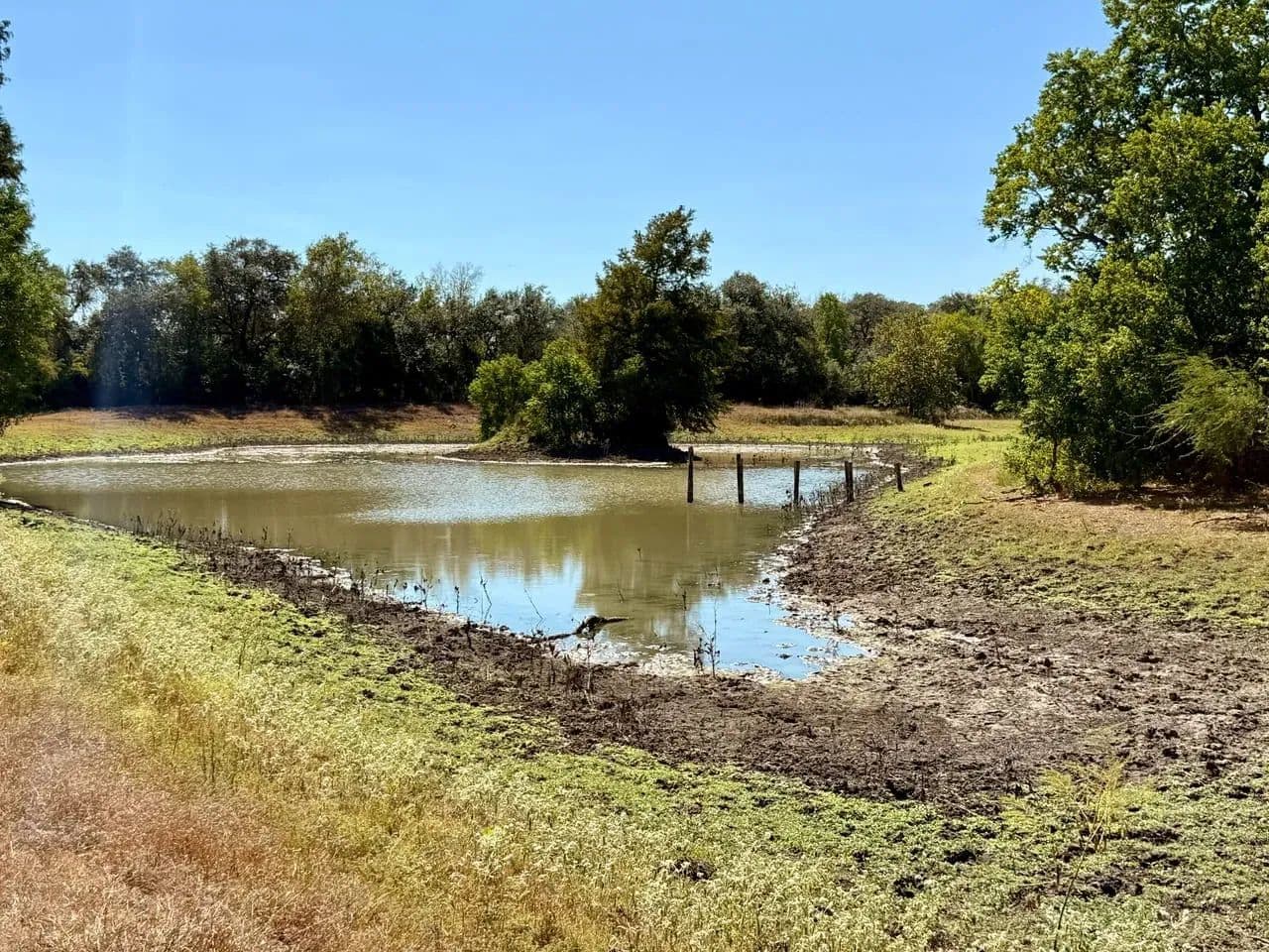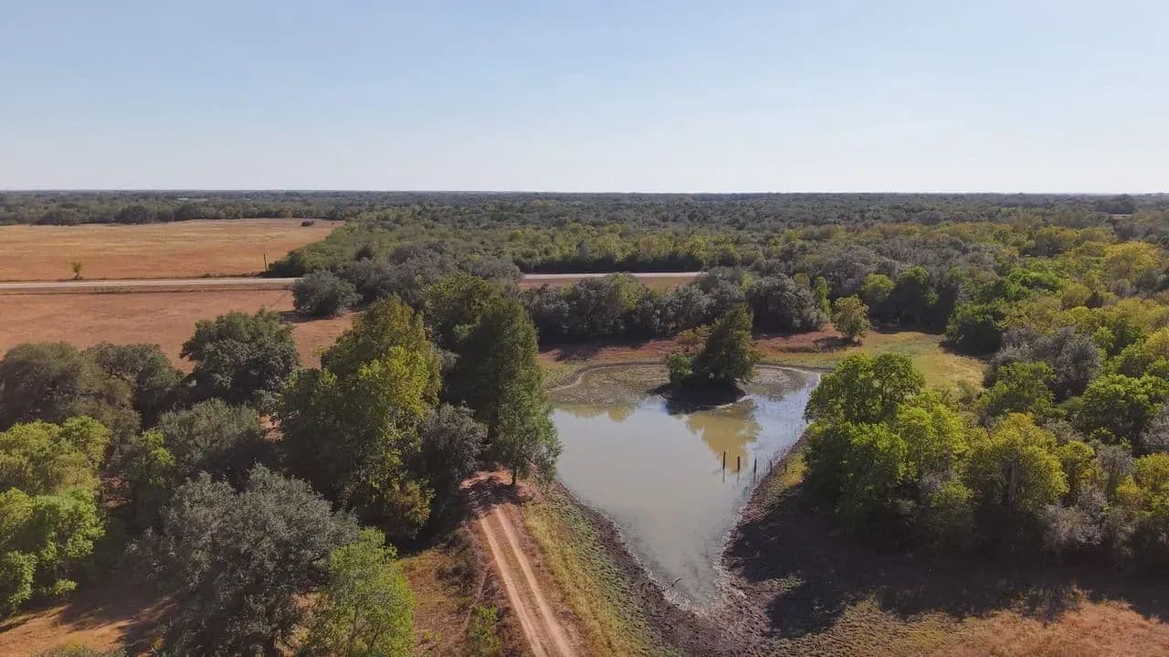 This property offers more than just utility; it offers an escape. Toward the north end, you can follow the wet-weather creek winding through the trees. In the front (south) pasture, you'll discover a peaceful stock tank with its banks shaded by majestic 50-year-old cypress trees—a perfect spot for fishing or watching the sunset. And for the sportsman? This land is a prime hunting ground, offering superb opportunities for deer, hogs, dove, and varmints.