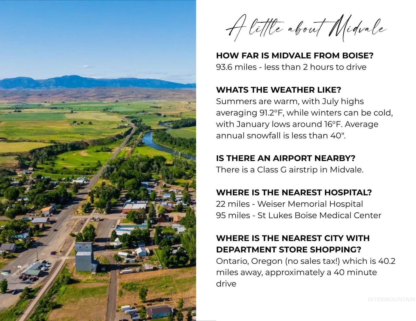 Idaho ranching roots run deep on this productive 80-acre property along the Weiser River, with additional creek frontage from Beaver Creek. Equipped with priority water rights, two three-tower center pivots, three wheel lines, and three Middle Valley Ditch shares, this land offers dependable irrigation for hay, pasture, or row crop production. Currently planted in alfalfa, the field is primed for immediate use. Cross-fenced pastures support livestock, while direct access to the 80+ mile Weiser River Trail opens up opportunities for horseback riding, biking, hiking, and wildlife watching. Located less than a mile from Midvale, with development splits verified through Washington County, this is a rare opportunity to secure irrigated land with both agricultural function and long-term potential.