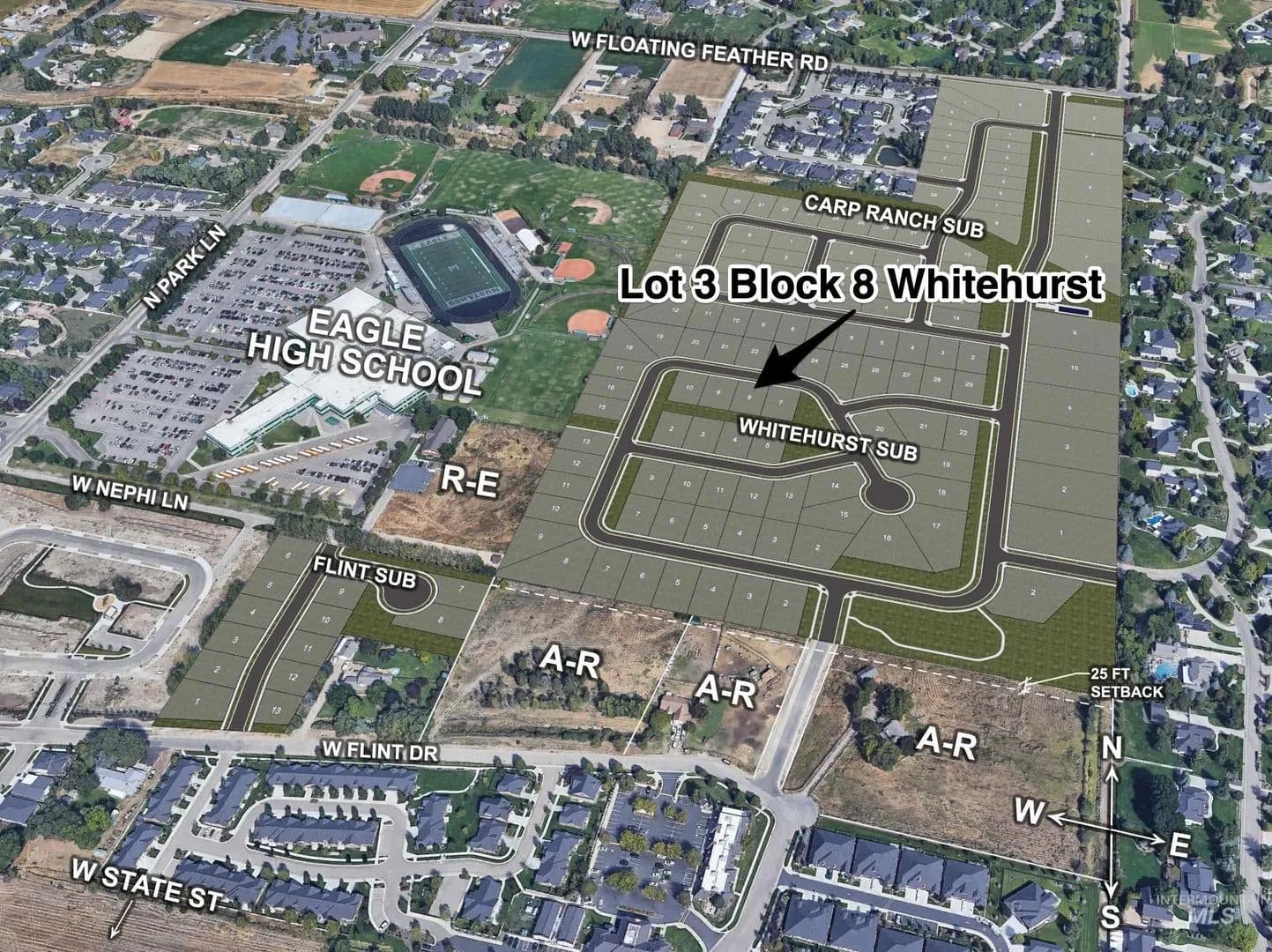 Discover the opportunity to build your dream home with Zach Evans Construction in the heart of Eagle, ID’s desirable Whitehurst Neighborhood! Lot #8, Block #3 offers a prime, nearly 1/4-acre homesite, perfectly positioned for privacy with adjacent neighborhood open space, ideal for a spacious back patio. This site is designed to accommodate a light-filled, 2,200–2,900 SF custom floor plan with a south-facing backyard and the option for an RV garage. Enjoy an unbeatable location just steps from the Boise River, Greenbelt, Downtown Eagle, parks, and recreation. Stroll to nearby coffee shop, yoga, and spa in minutes. Zach Evans Construction, a trusted name in the Treasure Valley since 1993, offers in-house architectural and design services for a seamless, affordable design process. From plan to completion, expect 2–3 months for design and just 120 days for construction. Contact us today to start crafting your fully custom home in Whitehurst! (Example homes pictured)