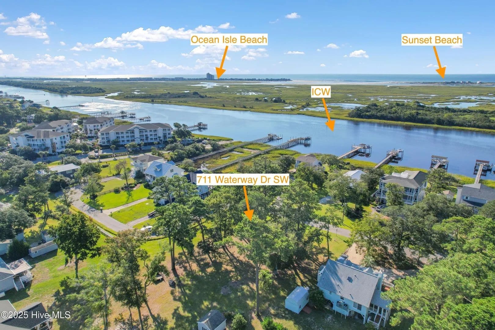 NEW PRICE! PRIME LOCATION! This gracious vacant lot offers a rare opportunity to build your dream home just one row back from the Intracoastal Waterway (ICW). Located in a peaceful and well-established coastal neighborhood at Sunset Beach, NC, the homesite provides partial water views and easy access to the scenic waterway, ideal for boating, kayaking, or simply enjoying serene coastal living. Generously sized at almost ½ acre, the mostly level and cleared corner lot requires minimal site prep for your custom built seaside retreat. Easy access down the paved, dead-end road with low traffic provides quiet & tranquility. Utilities are available at the street, no HOA, and water views makes this a prime location! Build close to the water without the premium waterfront price. Just steps from the ICW and close proximity to Sunset Beach, Ocean Isle Beach, public boat ramps and local businesses makes this spot hard to beat. You can even drive a golf cart to the Sunset Beach Concerts & Markets in the waterfront Park. Don't miss this opportunity!