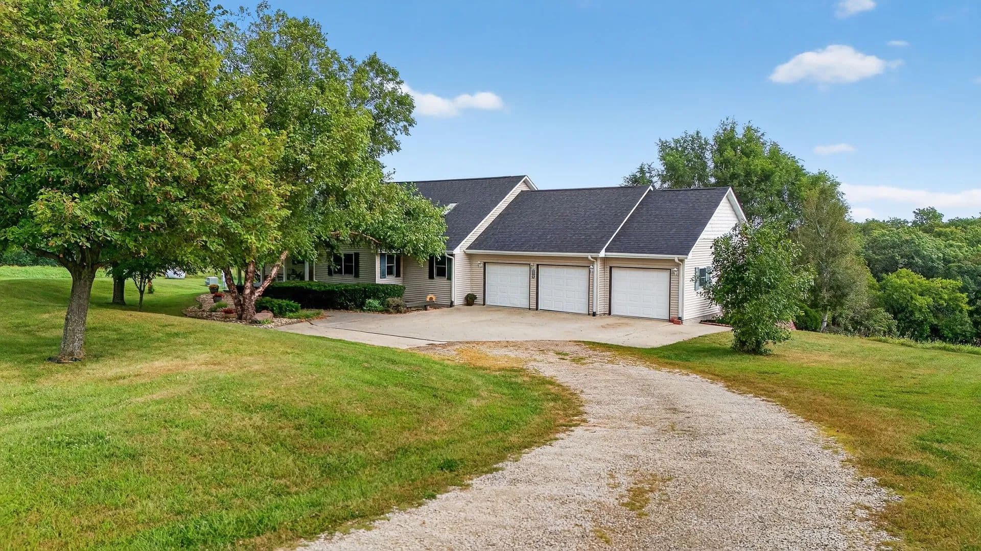 Nature lover’s dream! Tucked away on 8.1 breathtaking acres, this property offers peace, privacy, and a front-row seat to nature’s beauty. Mature trees surround the home, creating a serene setting filled with wildlife and seasonal color. Step inside to an open-concept main level designed to bring the outdoors in, featuring a spacious eat-in kitchen with walk-in pantry and large windows framing the view. A versatile bonus room makes an ideal home office or quiet reading nook. The generous primary suite provides a relaxing retreat with a private en suite. The finished walkout basement adds two additional bedrooms, a full bath, and plenty of storage space. With a 3-car attached garage and endless space to roam, unwind, or explore, this property blends comfortable living with the tranquility of nature. With over 2,000 SF finished!