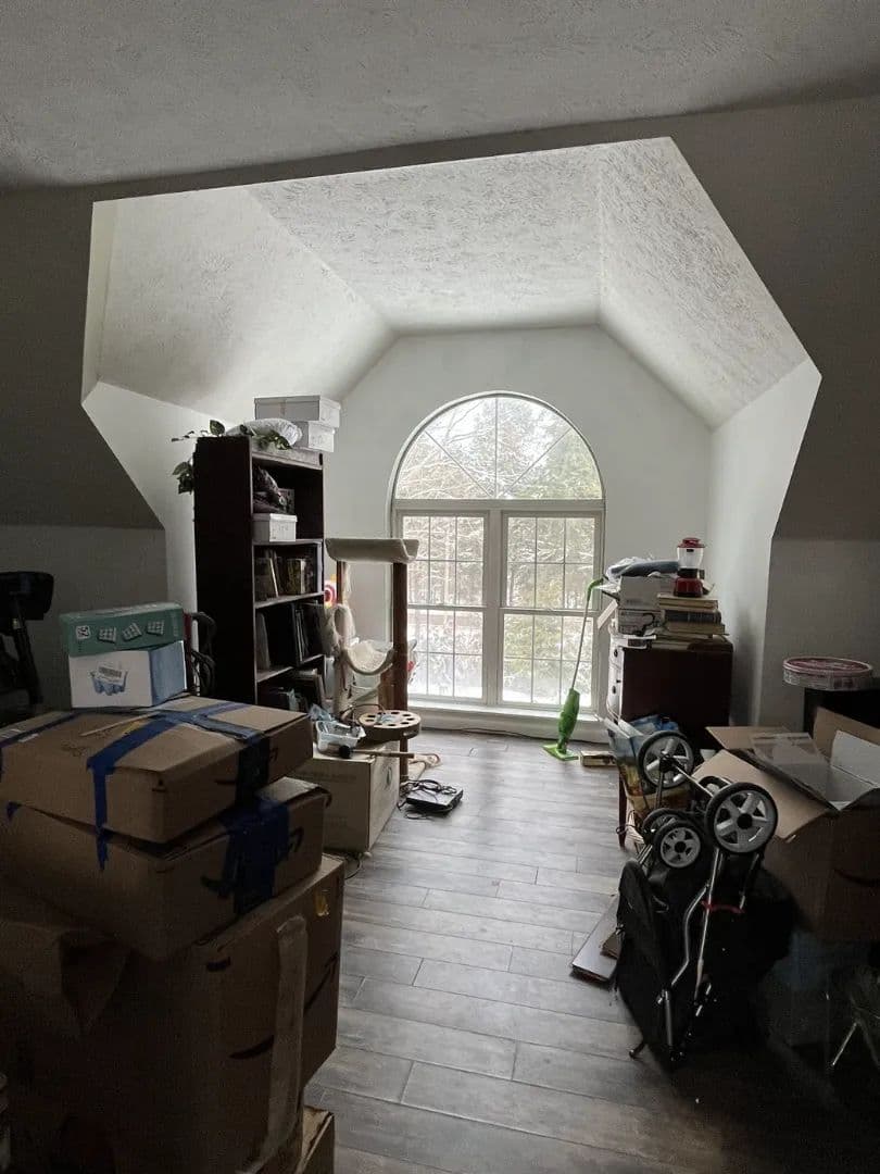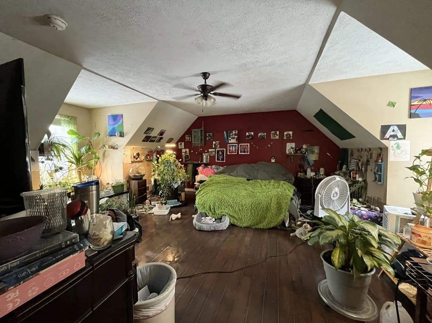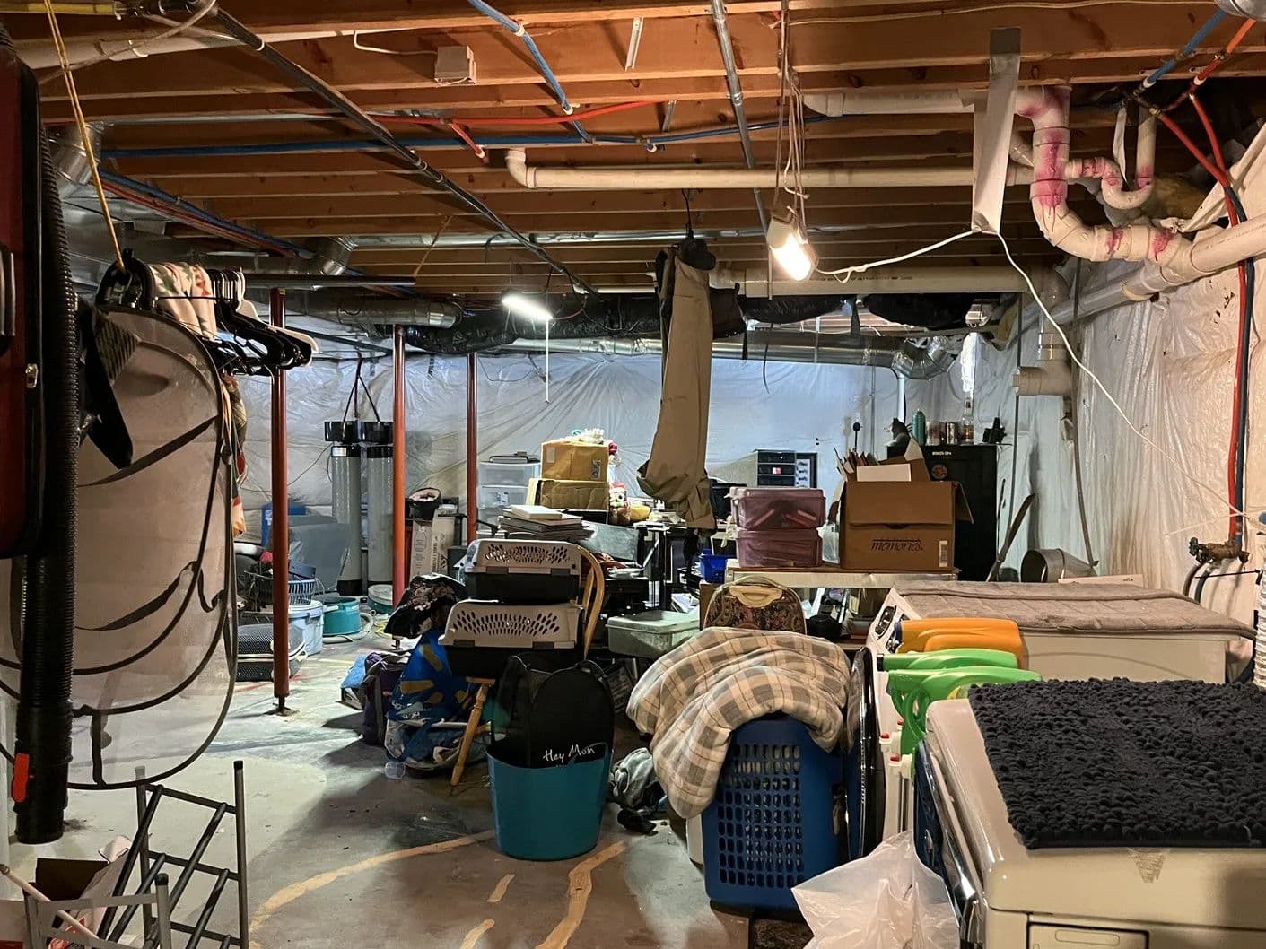 The spacious kitchen, dining room, and living area create an open-concept environment. The main level includes two bedrooms, one being the primary, while the upper level has a third bedroom and a generous flexible space that could accommodate additional bedrooms or a family room. The basement is partially divided into rooms presenting opportunities for expanding living areas or adding storage.
