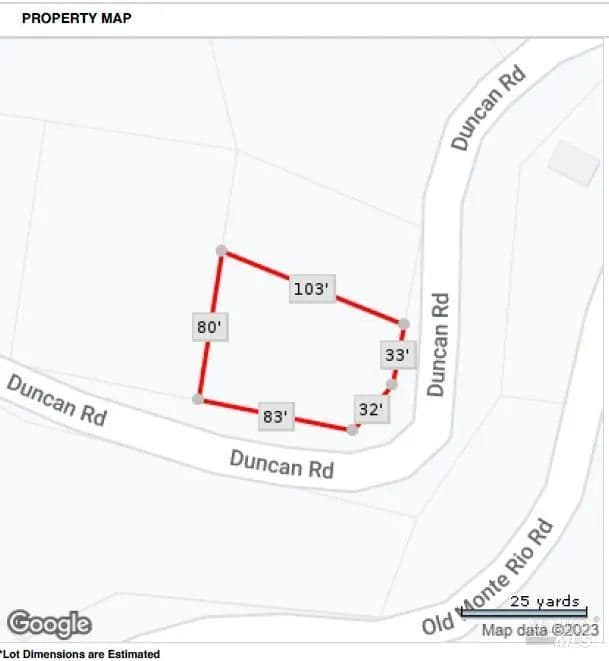 17561 & 17565 Duncan Road Two adjoining parcels totaling approximately 19,000 sq. ft., offered for sale together. The lots offer a convenient location near downtown Guerneville while providing a sense of privacy. The property has been partially cleared and includes stairs for access and viewing. Located in the Russian River area, known for outdoor recreation, redwood forests, and nearby wine country, with easy access to local towns along Highway 116 and River Road.