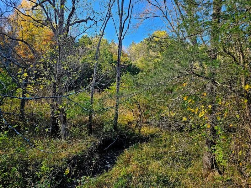 64.59 acres in Harrison County offering a mix of pasture, timber, and water features. Approximately 28 acres are wooded and managed under a Kentucky Forest Stewardship Plan with an estimated $30,000 in marketable timber. The woodland is fully stocked and productive, featuring hickory, sassafras, honey locust, white and red oak, and a strong stand of eastern red cedar.