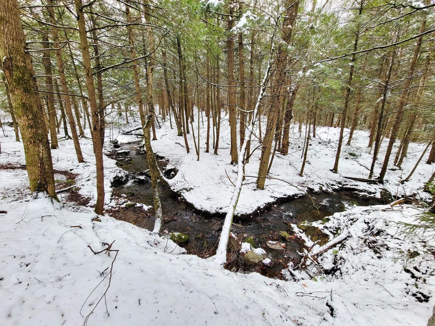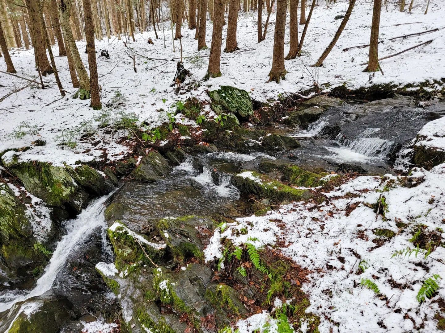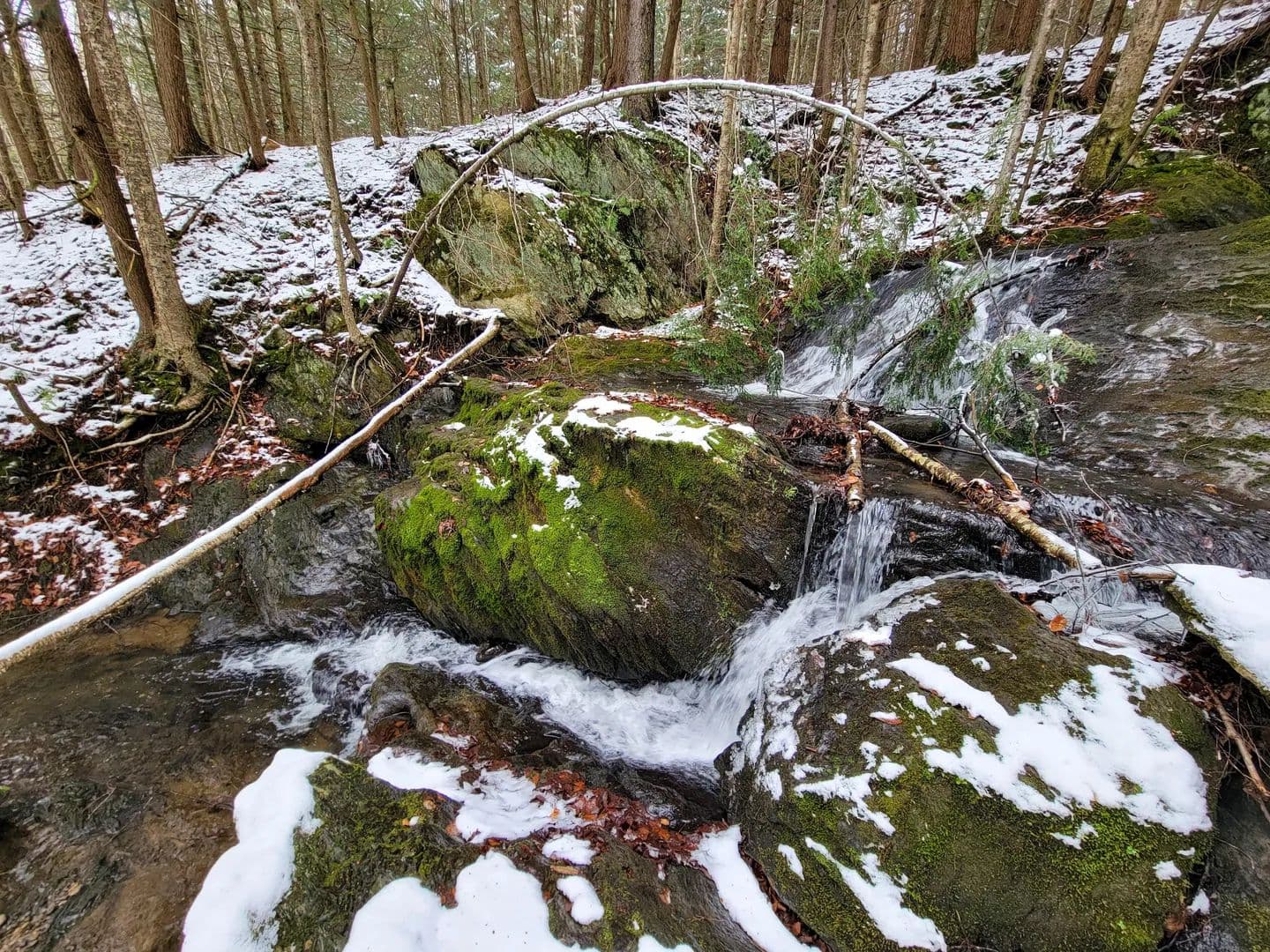 For the first time since 1984 the beautiful Majestic Falls Forest, located in the famous ski town of Stowe Vermont, is finally for sale. This expansive 19.47+/- acre woodland property sits above the VT-100 corridor with views of the valley farms to the north and Mt. Mansfield to the northwest. A very mature woodland is made up primarily of hemlock intermixed with maples and birch. Enjoy the wildlife as the deer move steadily through the property to feed in the abundant fields below. Two tributaries of the Moss Glen Brook flow gently through the property. The property is named for the incredible falls on the eastern tributary, 150+/- feet of beauty, rolling over large rock slabs and boulders. The driveway is a ROW that has been well marked and roughed in up to one of the potential home sites. Two stream crossings will be required and there is a small pond at the entrance to the property. Conveniently, a residential power line runs on the west edge of the property greatly simplifying utility access. The ROW is accessed from the end of a very nice residential neighborhood whose roads are plowed and maintained by the town. The land is gently rolling with many potential areas for a home or homes. The seller does have a preliminary 5 lot subdivision plan from the 80’s that can be provided along with soil test pit results. Stowe is well known for its year-round recreation, shopping, events and the Stowe Ski Resort. An amazing opportunity to create your private estate.