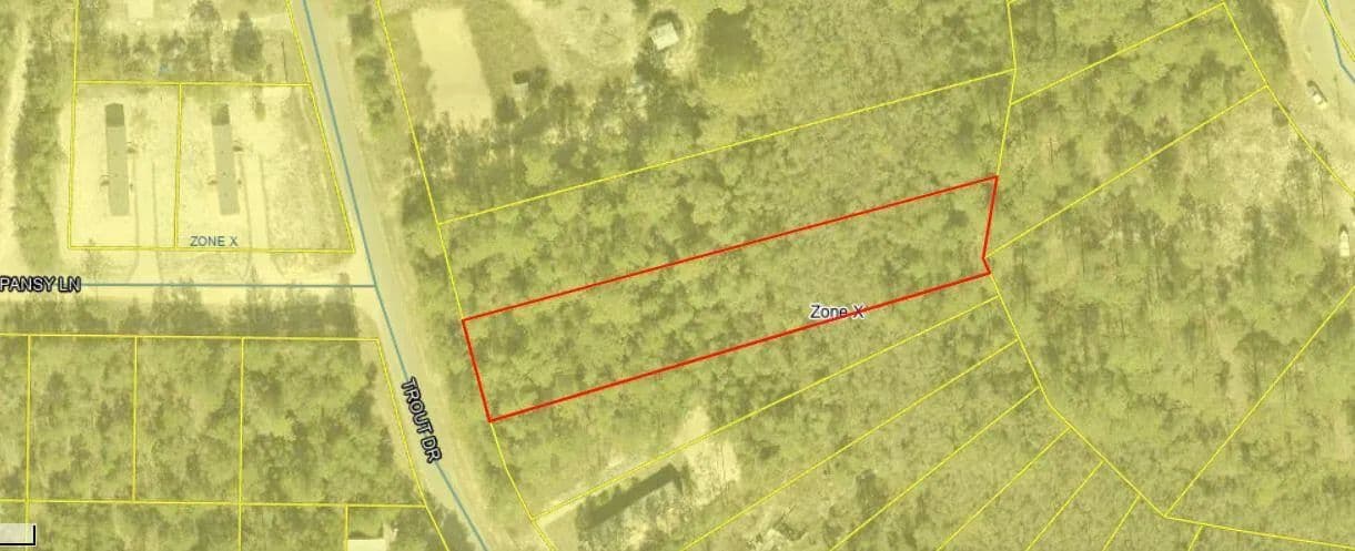 Reel in Your Dream Lot on Trout Drive! Tucked away in the peaceful beauty of DeFuniak Springs, this 0.669-acre wooded lot is a hidden gem waiting to be discovered. With over 400 feet of depth, this spacious and private slice of nature offers plenty of room to bring your vision to life--whether that's your dream home, a cozy cabin getaway, or a smart investment. no hoa. Don't let this one swim away--cast your offer today!Power available at the road.Well and Septic are required.Mobile Homes AllowedFlood Zone X - No flood insurance requiredSmall Wetlands Creek on back of propertyZoning - Rural Low Residential