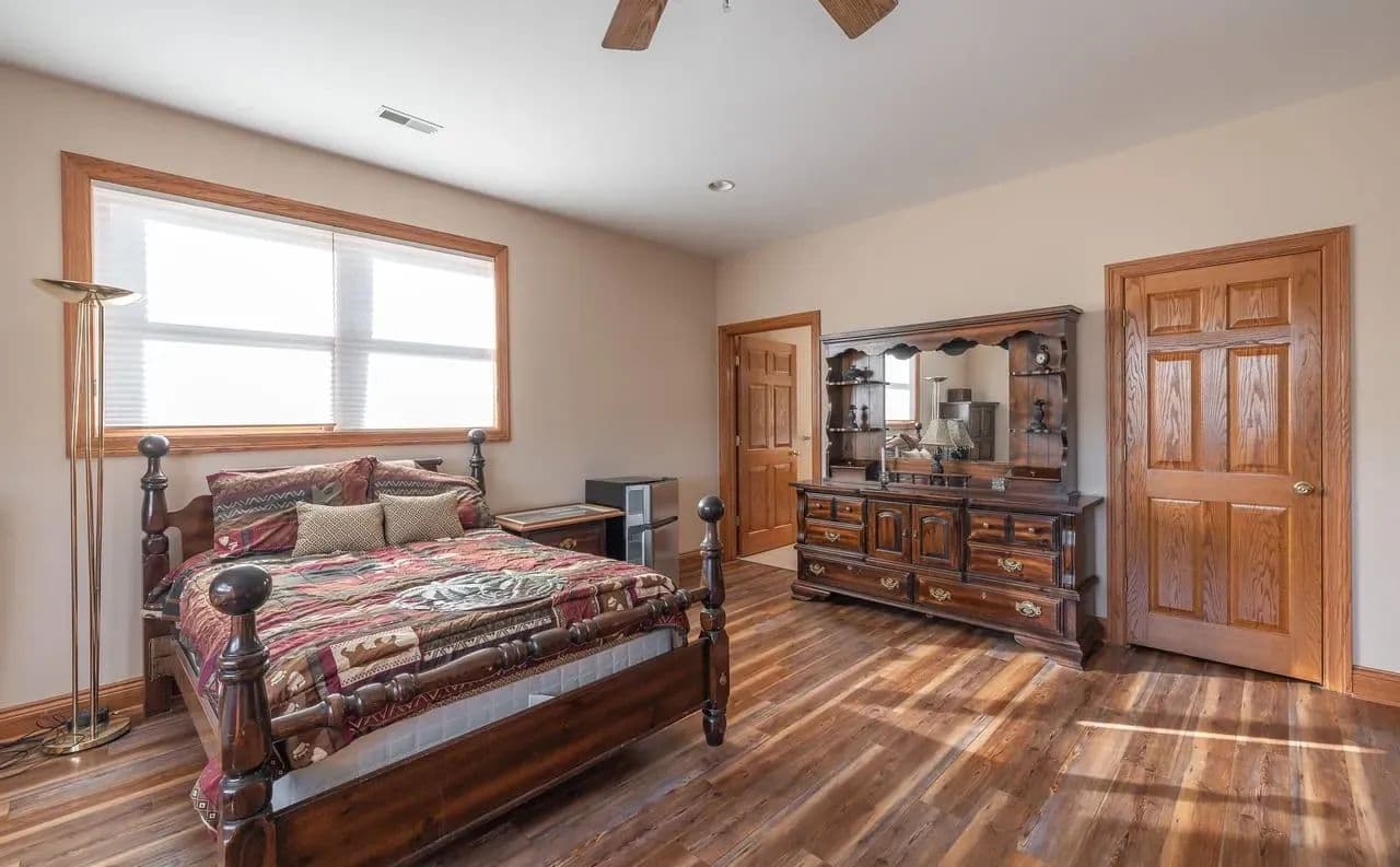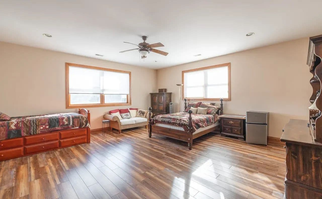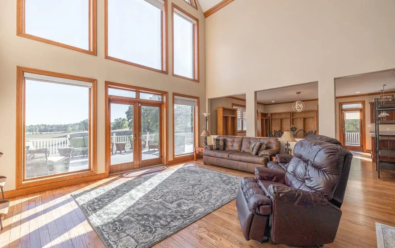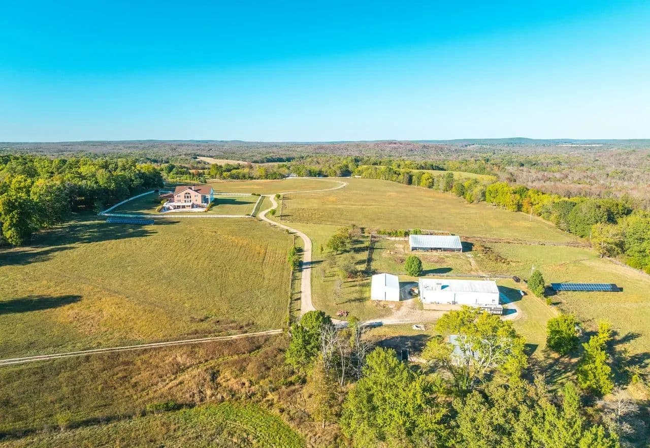 Fischer Farm and Ranch Estate – Turnkey, Multi-Use Property! This 122+ acre working farm combines productivity, comfort, and self-sufficiency. Designed for livestock, crops, and residential living, the property includes multiple water sources, extensive fencing, and high-quality improvements throughout. Land and Water Features: Two ponds, seasonal springs, and a year-round creek provide abundant water. Three wells, six automatic cattle waterers, welded wire perimeter fencing, and cross-fenced pastures make this property livestock-ready. Four pastures, including a smaller barnyard pasture, each have multiple water sources for easy rotational grazing. Vinyl fencing lines the road frontage and surrounds the main home. Concrete driveways provide easy access to barns and home, and a 1,000-gallon diesel tank services machinery. Barns and Outbuildings: • Main Barn (“Grandma’s Barn”) – Three apartments (two wheelchair-accessible, one caretaker) with full kitchens, baths, laminate floors, and individual heating/cooling. Common area includes laundaronia, and three types of seedless grapes. Main Residence: Brick home with 6 bedrooms plus 2 sleeping rooms and 8.5 baths. Main-floor primary suite, four upstairs bedroom suites, and three basement suites (two non-conforming). Each bedroom has a full bath and walk-in closet. Two kitchens and three laundry areas support multi-generational living or staff. Main kitchen includes Viking/Sub-Zero appliances, cherry cabinetry, large pantry, and breakfast bar. Professionally refinished oak floors, tiled entries, and laminate bedroom floors complete the home. Living areas include cathedral ceilings, gas fireplace, south-facing windows with remote blinds, and French doors to patios overlooking the 22,000-gallon fiberglass pool. Outdoor entertaining is enhanced by patios on three sides, overlooking pastures, ponds, and natural scenery. Infrastructure and Systems: Steel-stud construction, Anderson windows, central vacuum, conduit wiring, three geothermal HVAC systems (main replaced 2025), five 40-gallon water heaters plus on-demand unit for master bath. Solar power via 104 SolarEdge panels with net metering. Four 200-amp electrical panels (800 total amps), buried 1,900-gallon LP tank, and cellular booster ensure full functionality. Summary: A rare opportunity blending high-quality infrastructure, multi-generational housing, livestock-ready land, and sustainable features. Ideal for cattle, crops, or a full-time rural homestead with income potential. This property is fully equipped for productive living, comfort, and convenience. Schedule your private tour today to experience this one-of-a-kind farm and ranch estate!