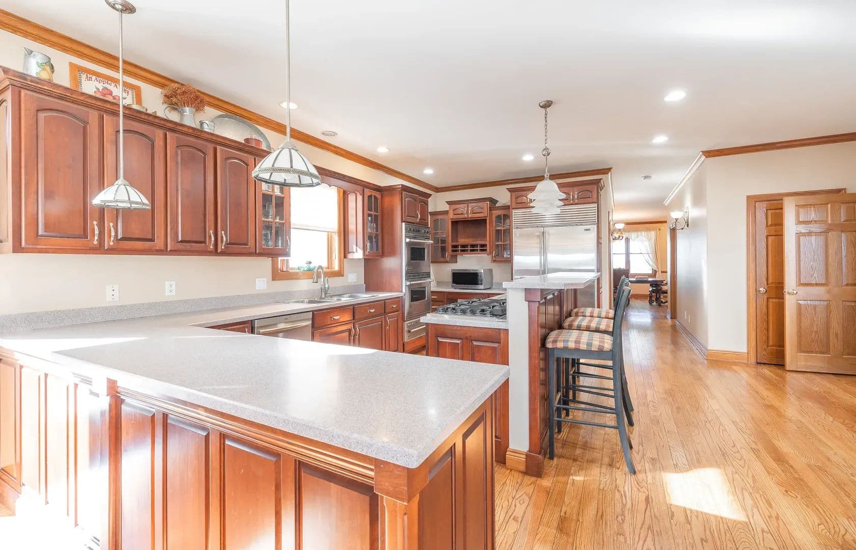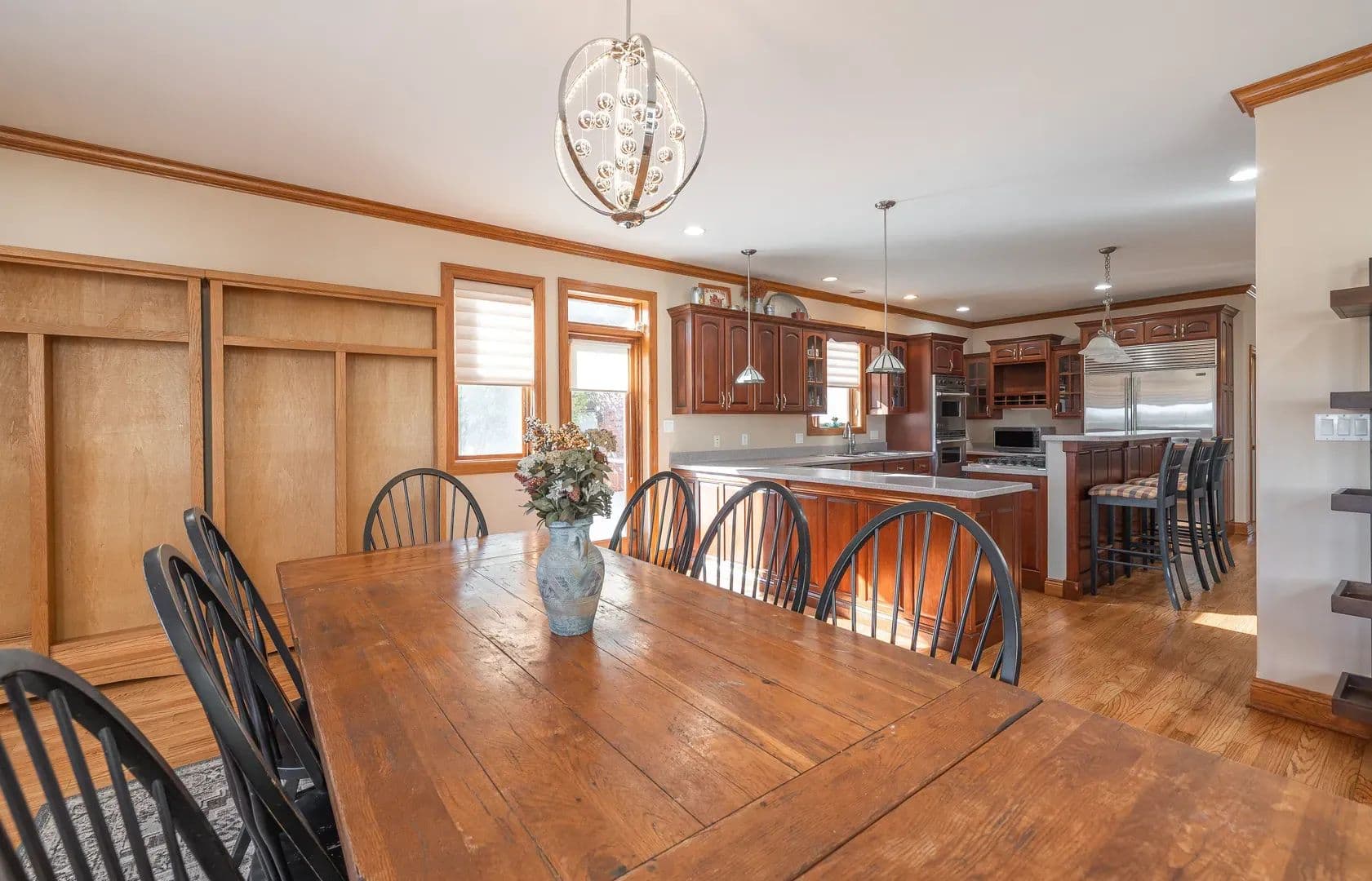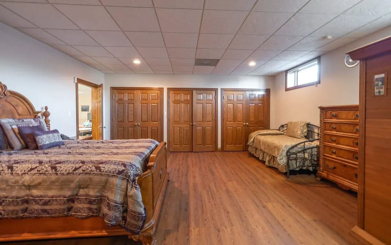 Fischer Farm and Ranch Estate – Turnkey, Multi-Use Property! This 122+ acre working farm combines productivity, comfort, and self-sufficiency. Designed for livestock, crops, and residential living, the property includes multiple water sources, extensive fencing, and high-quality improvements throughout. Land and Water Features: Two ponds, seasonal springs, and a year-round creek provide abundant water. Three wells, six automatic cattle waterers, welded wire perimeter fencing, and cross-fenced pastures make this property livestock-ready. Four pastures, including a smaller barnyard pasture, each have multiple water sources for easy rotational grazing. Vinyl fencing lines the road frontage and surrounds the main home. Concrete driveways provide easy access to barns and home, and a 1,000-gallon diesel tank services machinery. Barns and Outbuildings: • Main Barn (“Grandma’s Barn”) – Three apartments (two wheelchair-accessible, one caretaker) with full kitchens, baths, laminate floors, and individual heating/cooling. Common area includes laundaronia, and three types of seedless grapes. Main Residence: Brick home with 6 bedrooms plus 2 sleeping rooms and 8.5 baths. Main-floor primary suite, four upstairs bedroom suites, and three basement suites (two non-conforming). Each bedroom has a full bath and walk-in closet. Two kitchens and three laundry areas support multi-generational living or staff. Main kitchen includes Viking/Sub-Zero appliances, cherry cabinetry, large pantry, and breakfast bar. Professionally refinished oak floors, tiled entries, and laminate bedroom floors complete the home. Living areas include cathedral ceilings, gas fireplace, south-facing windows with remote blinds, and French doors to patios overlooking the 22,000-gallon fiberglass pool. Outdoor entertaining is enhanced by patios on three sides, overlooking pastures, ponds, and natural scenery. Infrastructure and Systems: Steel-stud construction, Anderson windows, central vacuum, conduit wiring, three geothermal HVAC systems (main replaced 2025), five 40-gallon water heaters plus on-demand unit for master bath. Solar power via 104 SolarEdge panels with net metering. Four 200-amp electrical panels (800 total amps), buried 1,900-gallon LP tank, and cellular booster ensure full functionality. Summary: A rare opportunity blending high-quality infrastructure, multi-generational housing, livestock-ready land, and sustainable features. Ideal for cattle, crops, or a full-time rural homestead with income potential. This property is fully equipped for productive living, comfort, and convenience. Schedule your private tour today to experience this one-of-a-kind farm and ranch estate!