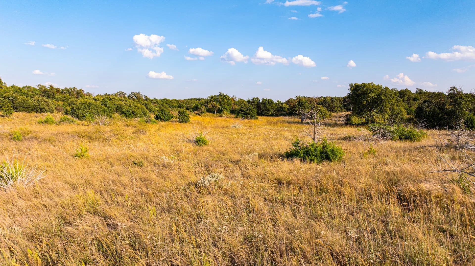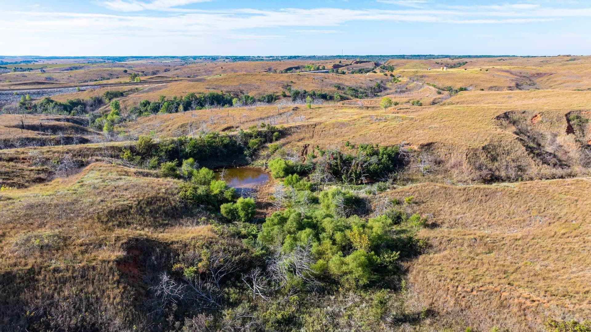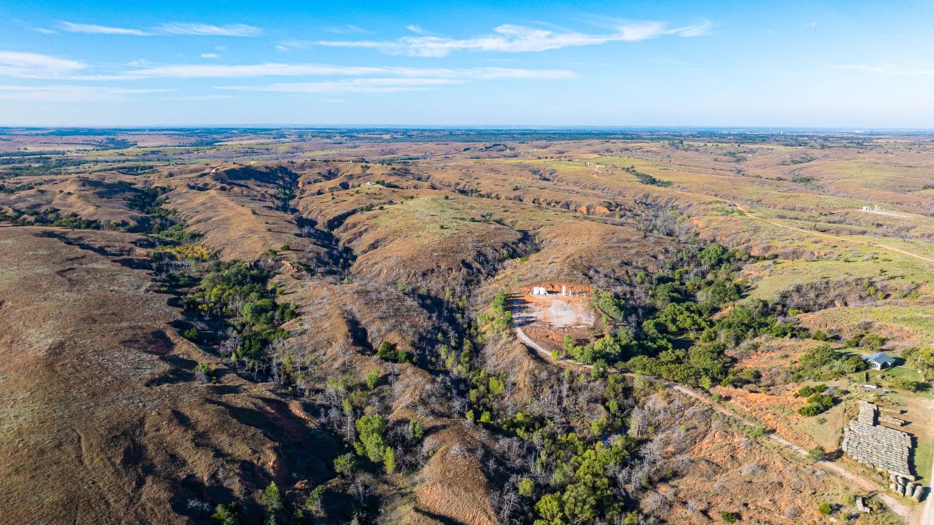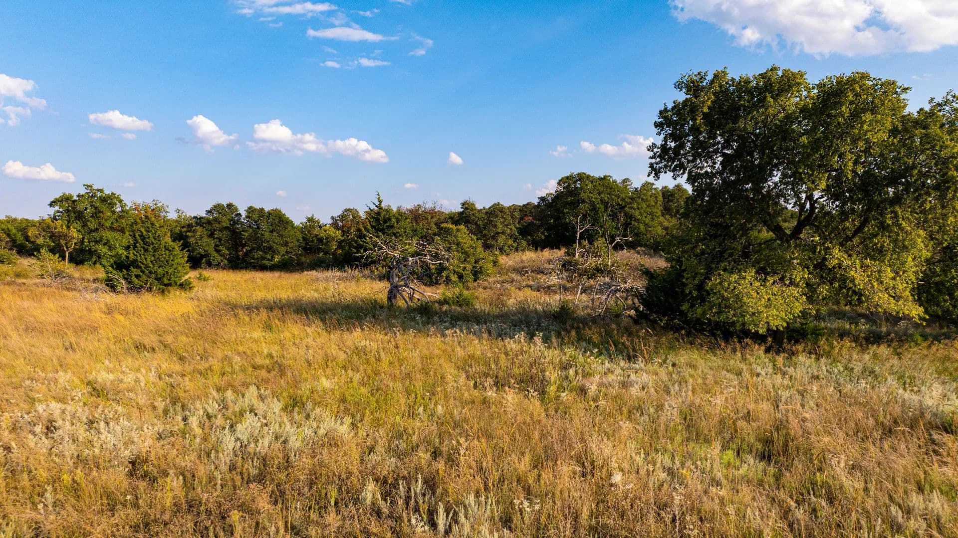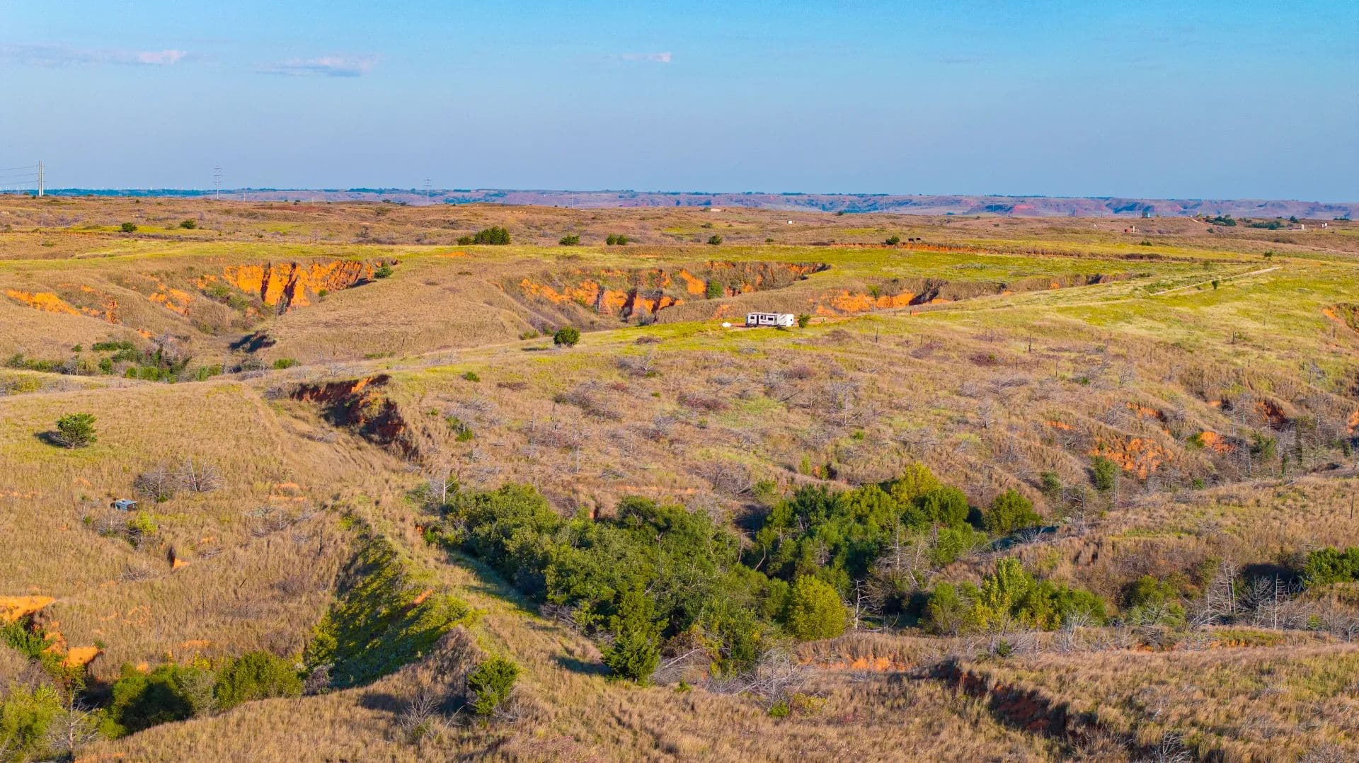 Tract 5: 548± ac A centerpiece tract within the ranch featuring mixed-grass prairie and multiple canyons with thick cedar, oak, and sumac cover. Includes a 30' x 20' Quonset-style cabin with propane, electricity, a water well, and outstanding panoramic views.