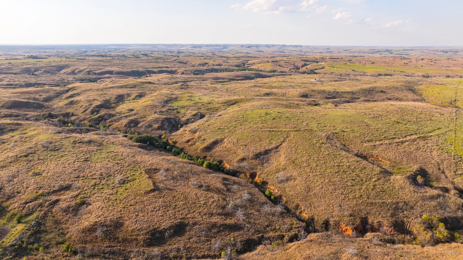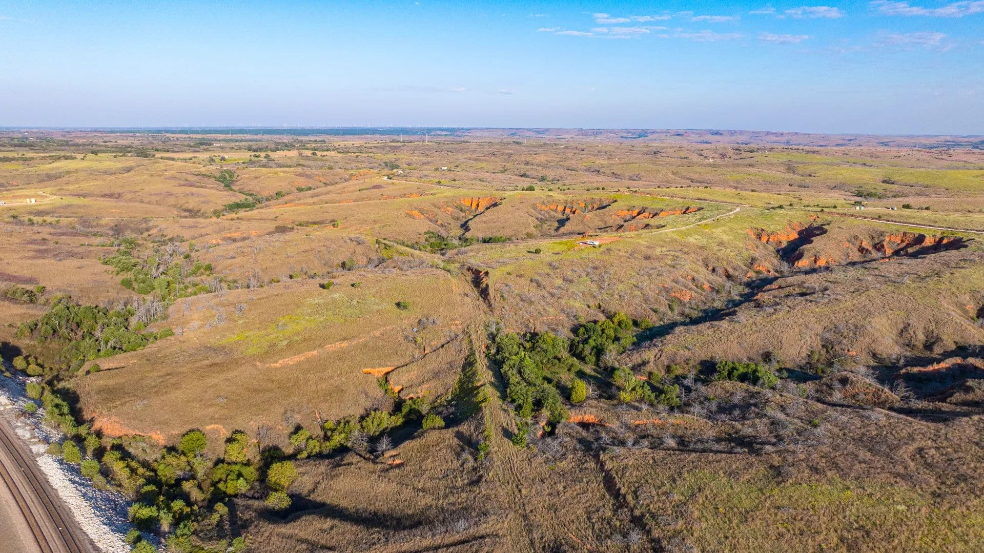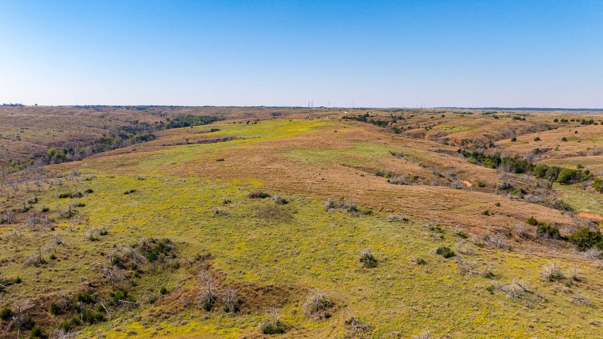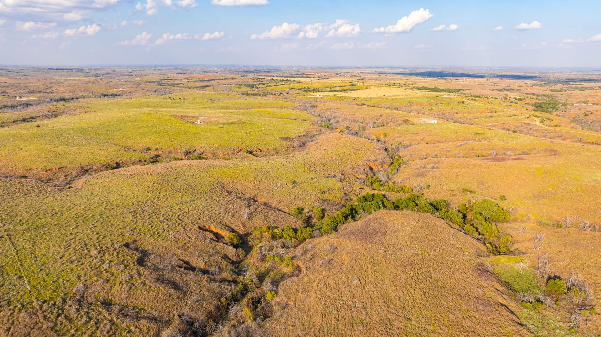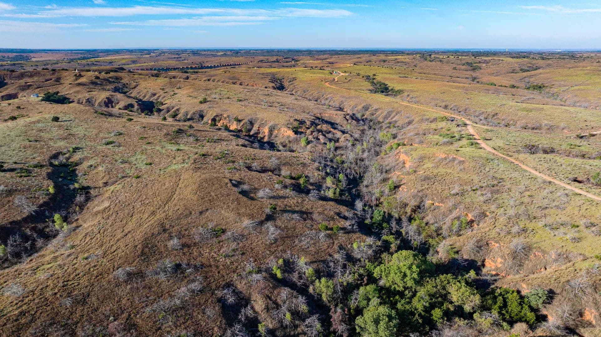 Tract 5: 548± ac A centerpiece tract within the ranch featuring mixed-grass prairie and multiple canyons with thick cedar, oak, and sumac cover. Includes a 30' x 20' Quonset-style cabin with propane, electricity, a water well, and outstanding panoramic views.