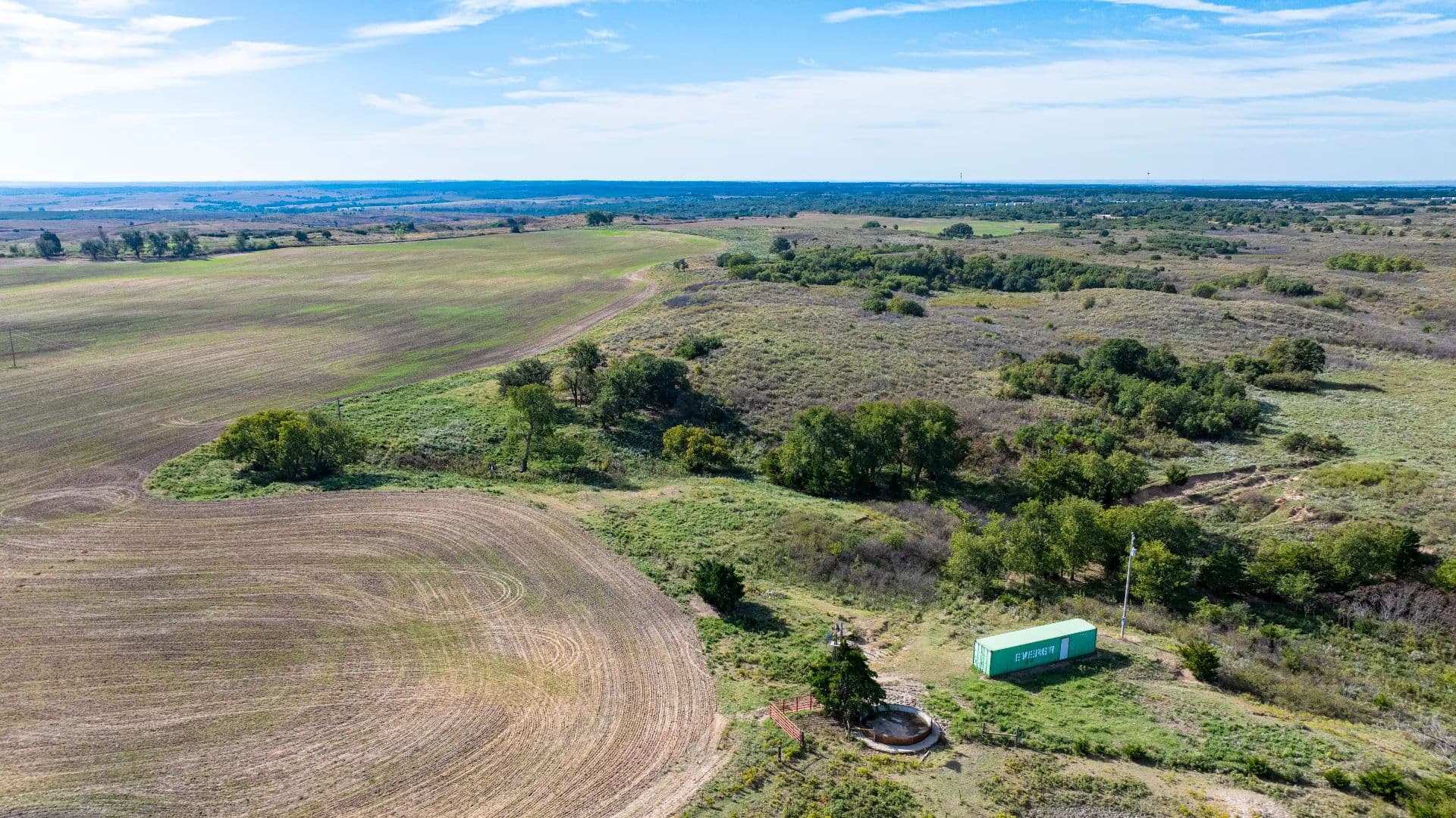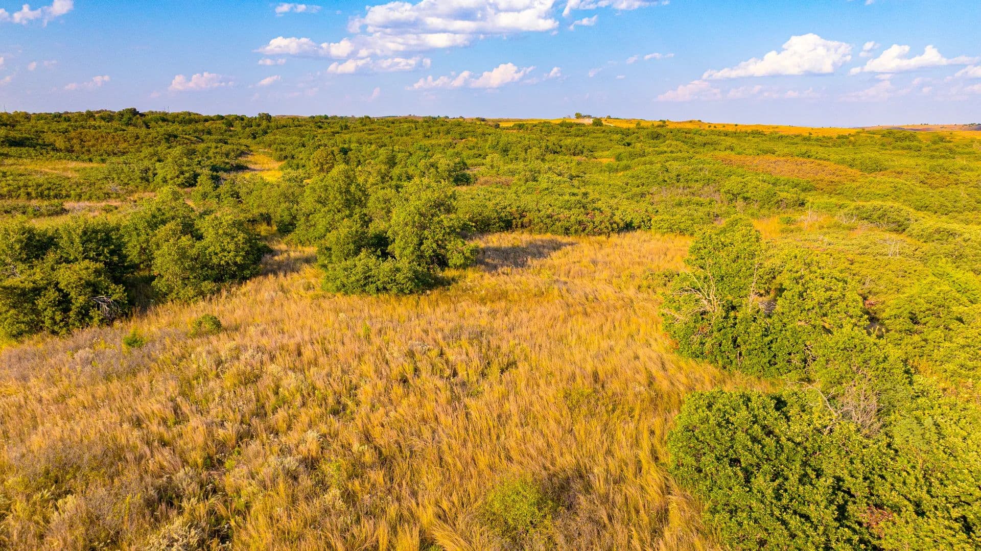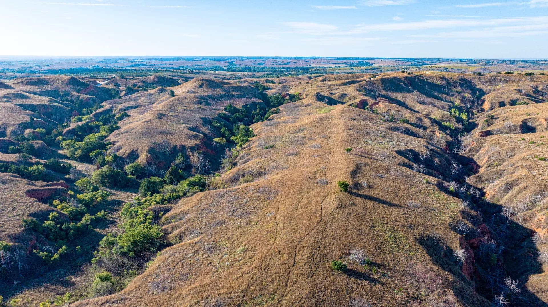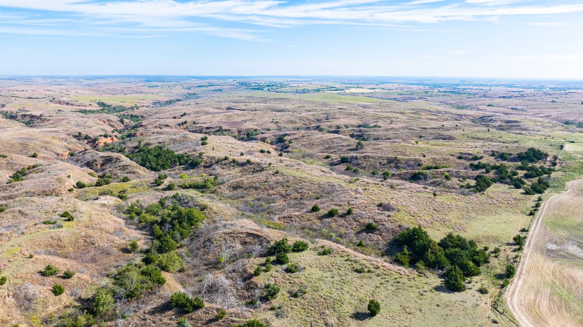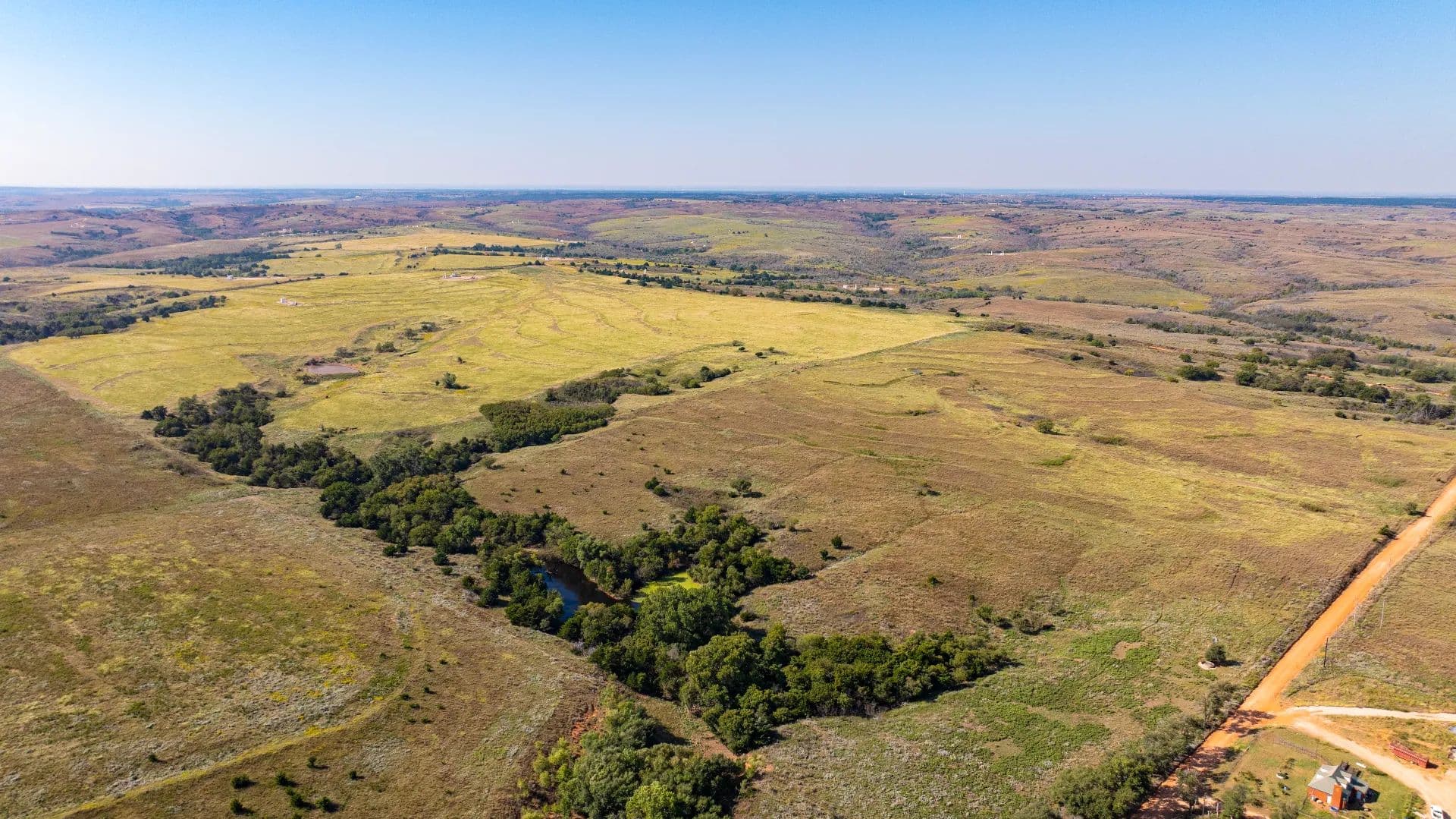 Tract 5: 548± ac A centerpiece tract within the ranch featuring mixed-grass prairie and multiple canyons with thick cedar, oak, and sumac cover. Includes a 30' x 20' Quonset-style cabin with propane, electricity, a water well, and outstanding panoramic views.