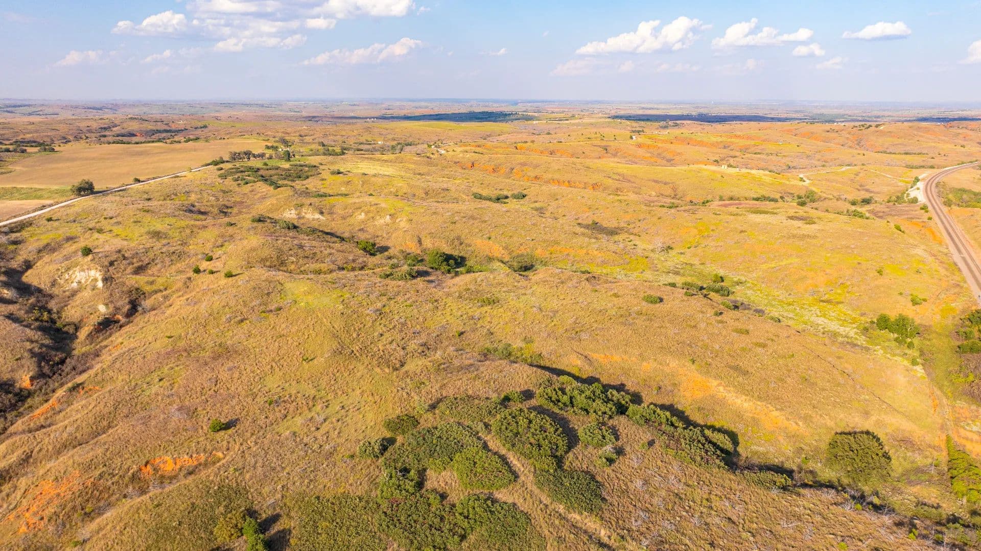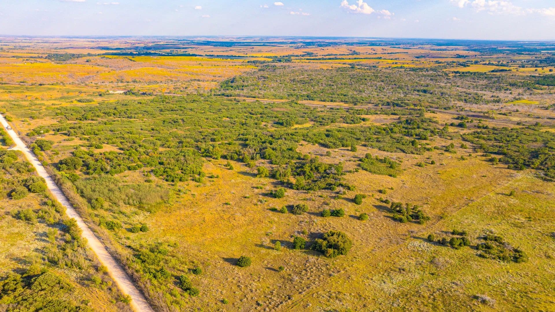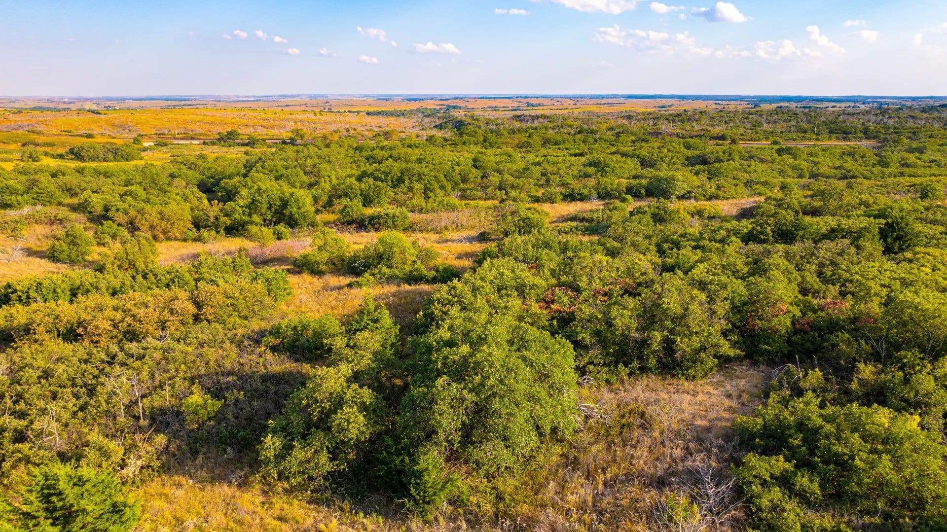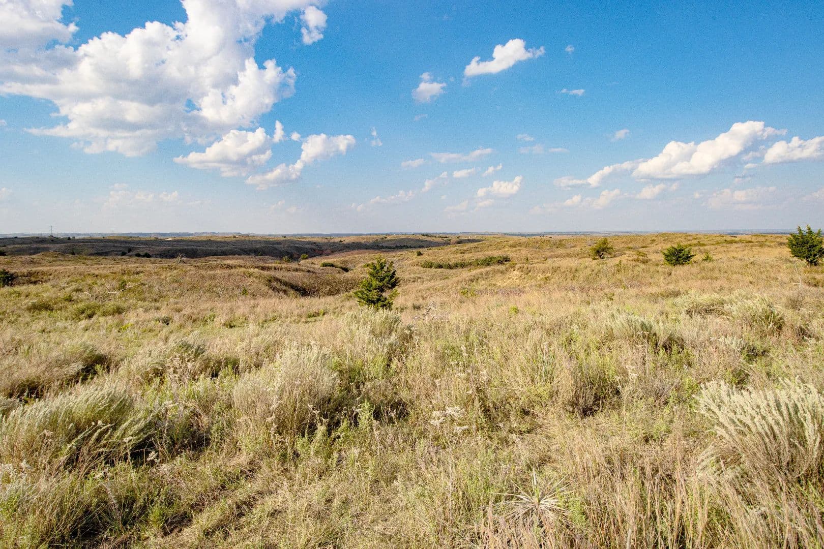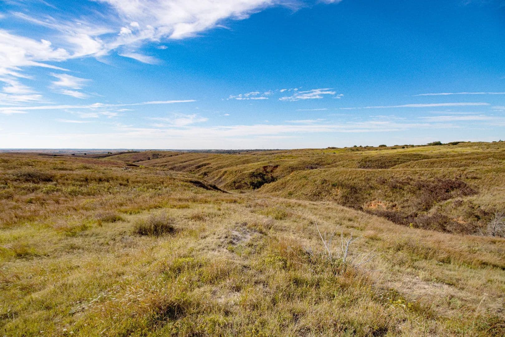Tract 5: 548± ac A centerpiece tract within the ranch featuring mixed-grass prairie and multiple canyons with thick cedar, oak, and sumac cover. Includes a 30' x 20' Quonset-style cabin with propane, electricity, a water well, and outstanding panoramic views.